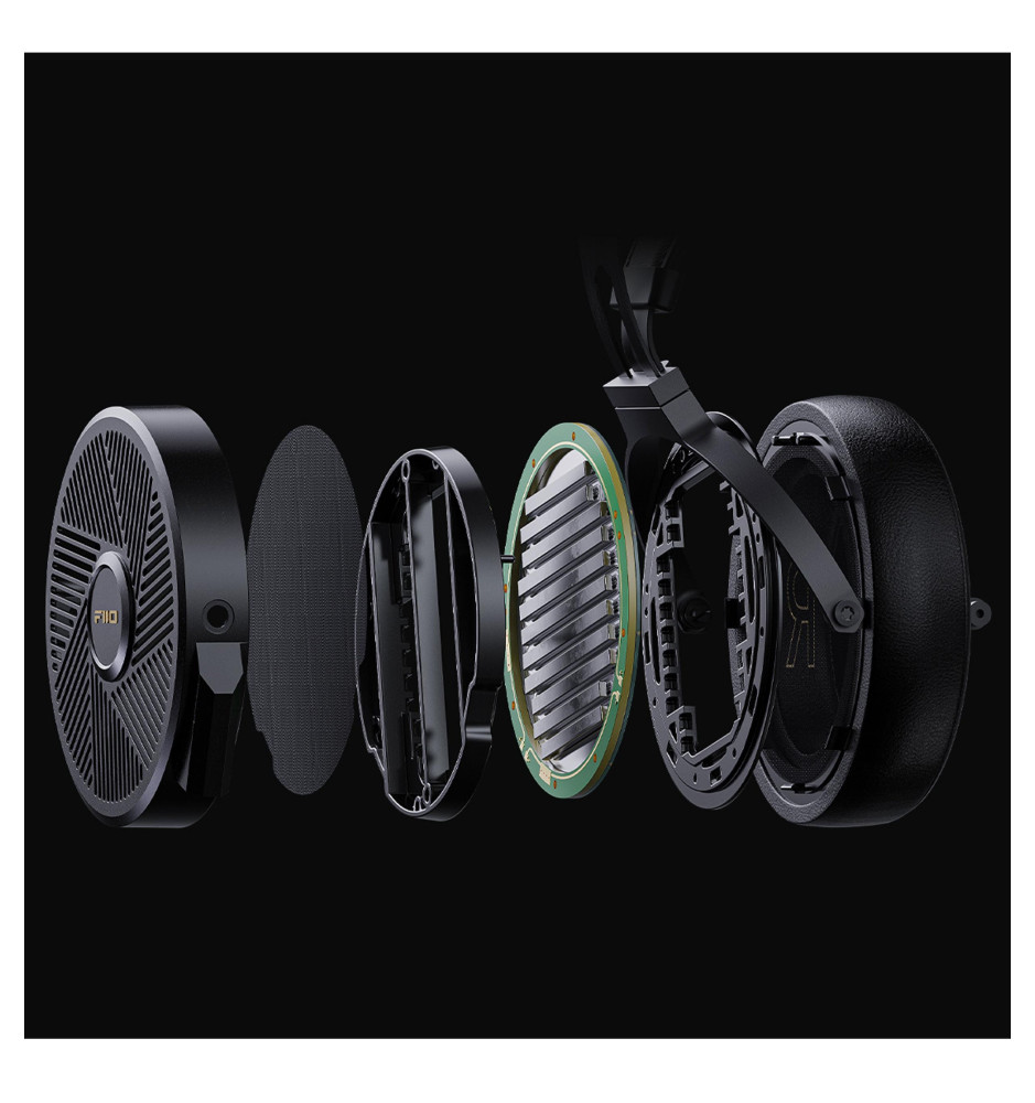 90-milimetrowe przetworniki wewnątrz słuchawek FT5 umieszczono w taki sposób, że fale dźwiękowe rozchodzą się równomiernie. Podczas opracowywania konstrukcji słuchawek inżynierowie marki FiiO zwrócili uwagę na sposób, w jaki cewki wchodzą w interakcję z membraną, ale także ich gęstość i przewodność. Dzięki temu słuchawki FIIO FT5 są w stanie bardzo dokładnie, wiernie i bezstratnie wyrażać sygnały audio.