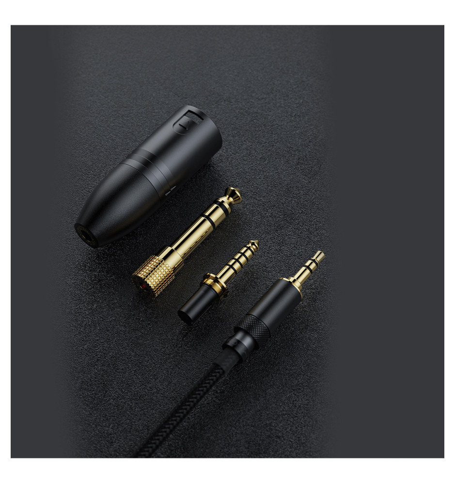Pełnię możliwości konstrukcyjnych słuchawek pomoże wykorzystać wysokiej klasy przewód o długości 1.5 metra na który składa się aż 392 przewodów z posrebrzanej miedzi monokrystalicznej o średnicy 23 AWG. W komplecie ze słuchawkami znajduje się także bogaty zestaw akcesoriów - wymienne wtyczki, adaptery, nauszniki oraz aksamitna torba i stylowe skórzane etui do przechowywanie.