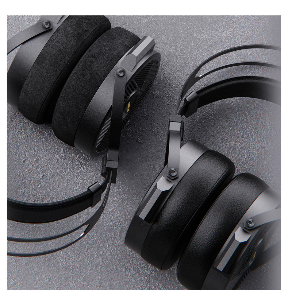 Wykonane ze stopu aluminium słuchawki nauszne klasy Hi-Fi o konstrukcji otwartej i impedancji na poziomie 36 Ohm wykorzystujące duże, 90-milimetrowe przetworniki magnetyczne.