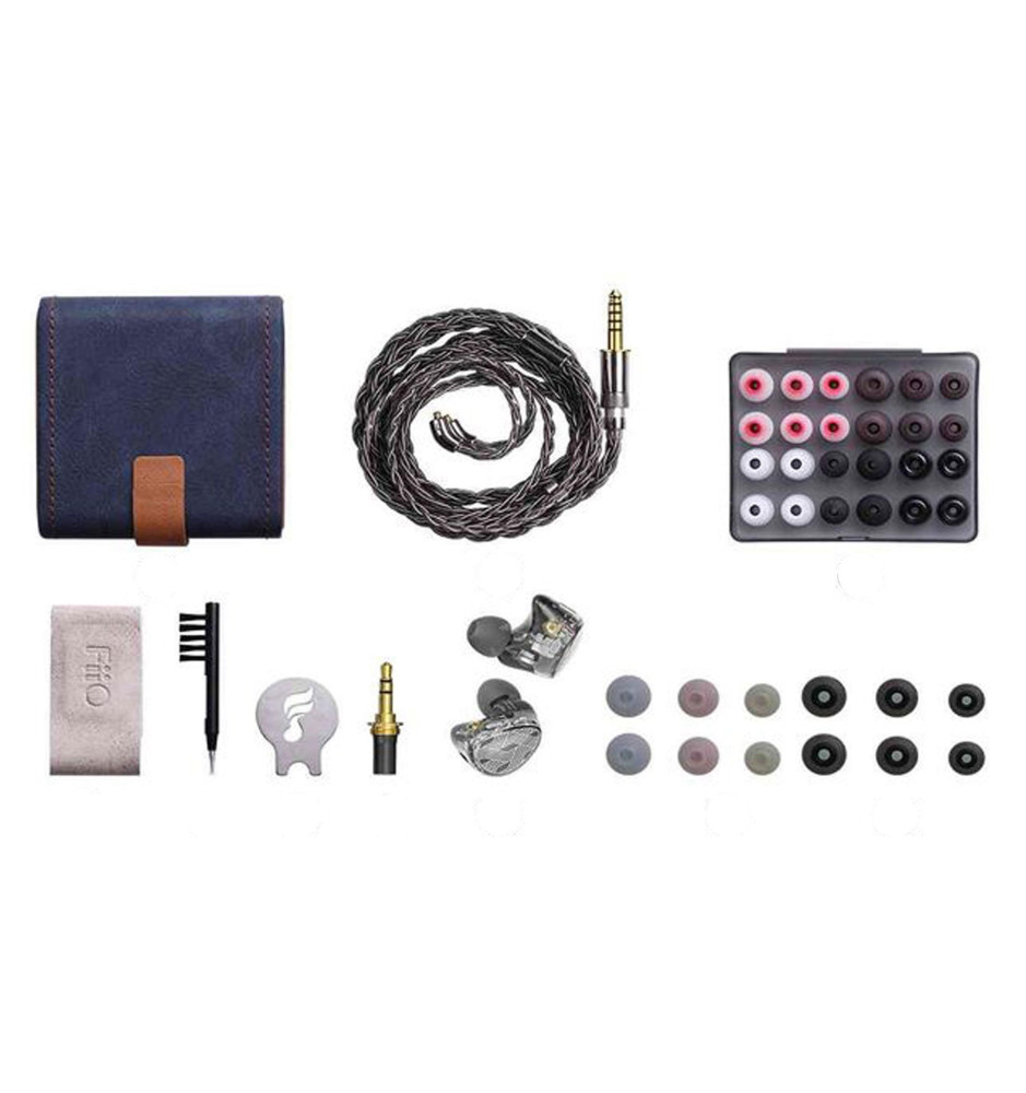 Oprócz samych słuchawek otrzymasz duży komplet akcesoriów, które pozwolą Ci konfigurować je wedle swojego uznania. Producent w gustownym opakowaniu umieścił m.in. aż 5 typów różnych wkładek dousznych w różnych rozmiarach, eleganckie etui i wymienne wtyki 3.5 i 4.4 mm. Oprócz tego w pudełku jest też narzędzie ułatwiające wymianę przewodu, szczoteczka do czyszczenia i poradnik szybkiego startu.