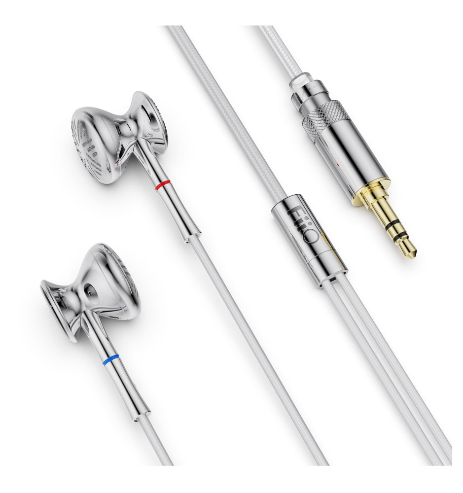 Słuchawki douszne marki FiiO z dynamicznymi przetwornikami ukrytymi w wyjątkowo lekkiej i wytrzymałej konstrukcji ze stali nierdzewnej 316L o eleganckim i stylowym wykończeniu.