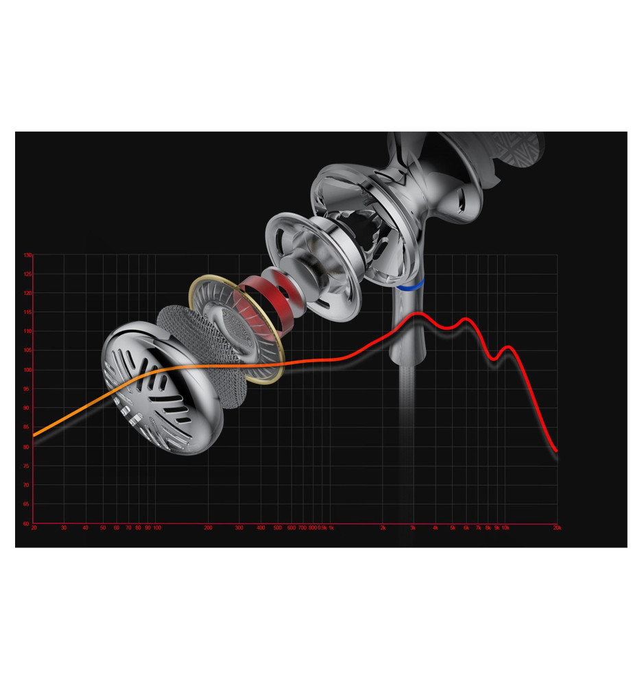 Na doskonały dźwięk w modelu FF3 składają się nie tylko właściwie dobrane 14.2 mm dynamiczne przetworniki, ale również kopuła membrany pokryta berylem z uszczelką PU. To, w połączeniu z ultracieńką aluminiową cewką drgającą Daikoku pokrytą miedzią zapewnia doskonały dźwięk i poprawę rozdzielczości wysokich tonów. Ponadto słuchawki wyróżniają się konstrukcją wnęki basowej, która zaprojektowano w taki sposób, żeby w pełni wykorzystać rezonanse i poprawić teksturę niskich tonów.