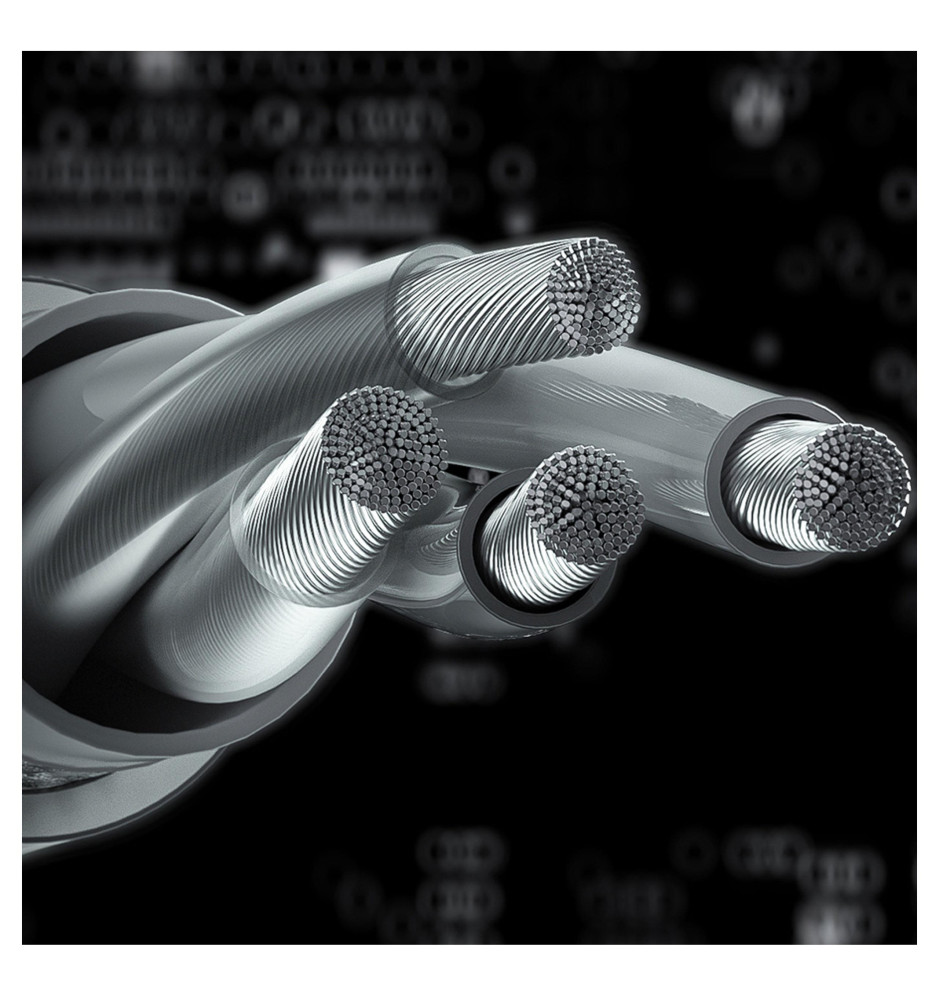 Dołączony kabel do słuchawek FiiO FF3 składa się w sumie ze 152 przewodów wykonanych z posrebrzanej miedzi monokrystalicznej o wysokiej czystości. Poddanie ich posrebrzaniu zdecydowanie poprawiło rozdzielczość wysokich tonów oraz pomogło wyeliminować część zakłóceń. Powłoka przewodu została zrobiona z tworzywa TPU, dzięki czemu sam przewód jest nie tylko odporny na żółknięcie czy pękanie, ale jest też bardziej elastyczny i wygodniejszy w użyciu.