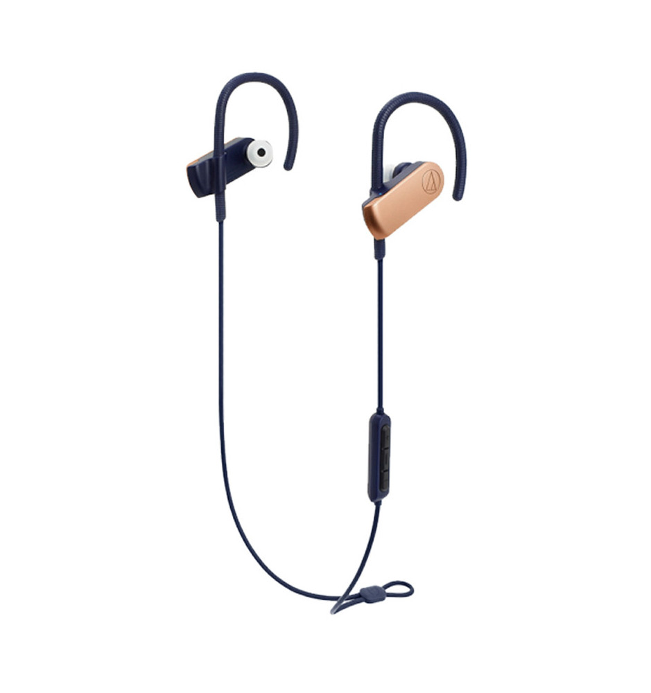 Słuchawki ATH-SPORT70BT wyposażono w pilot z mikrofonem umieszczonym na przewodzie. Wystarczy delikatnie nacisnąć przycisk, aby zmienić utwór, poziom głośności lub odebrać/zakończyć połączenie.