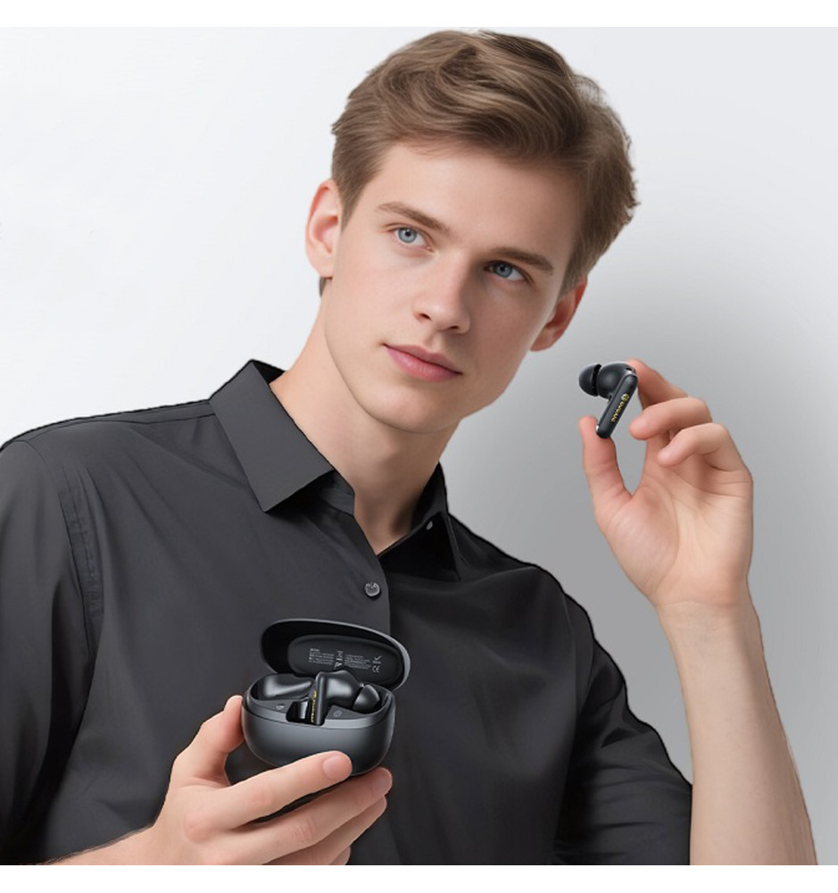 Dzięki Bluetooth 6.0 słuchawki oferują stabilne połączenie, niskie opóźnienia i mniejsze zużycie energii. Umożliwia to płynną komunikację z telefonem, tabletem lub laptopem, bez zakłóceń i przerywania dźwięku. Słuchawki oferują do 5,5 godzin pracy na jednym ładowaniu, a etui ładujące zapewnia nawet 20 godzin łącznego czasu odtwarzania. Złącze USB-C umożliwia szybkie i wygodne ładowanie, idealne w podróży.