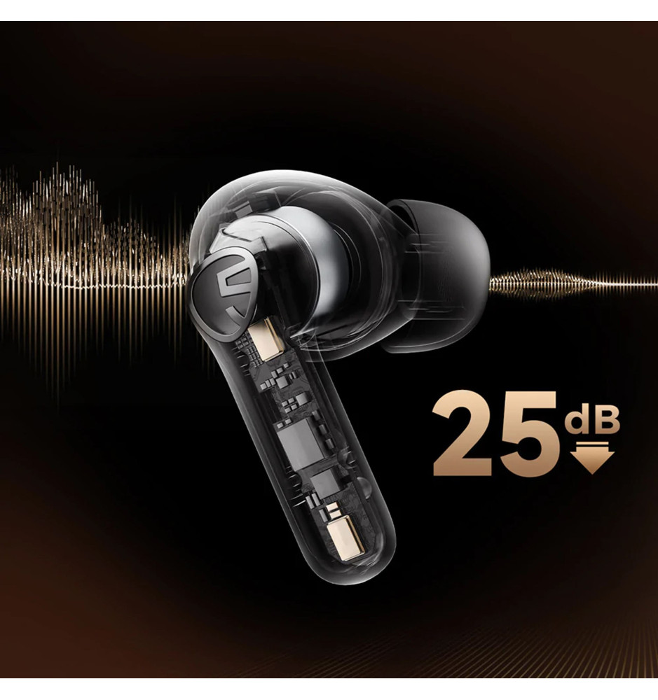 Słuchawki Life od SoundPEATS to w pełni bezprzewodowe słuchawki dokanałowe, które wyposażono w silną technologię aktywnej redukcji szumów pochodzących z otoczenia, niwelującą do 25dB hałasu zewnętrznego. Technologia ANC cechuje się niskim zużyciem baterii, zapewniając wyjątkowo zrównoważony dźwięk o wysokiej czułości.