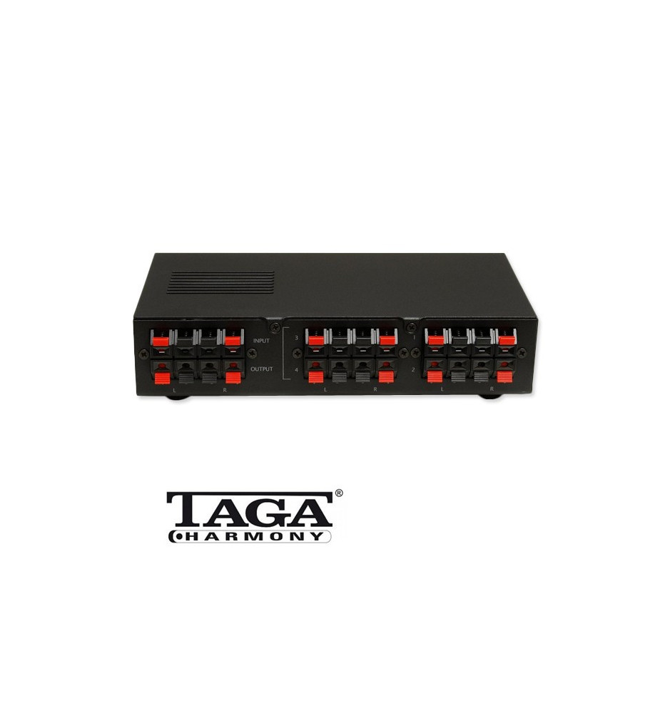 TAGA HARMONY TS-4 - wysokiej jakości selektor głośnikowy, gwarantujący podłączenie jednego niezależnego źródła oraz wypuszczenie dźwięku na 4 niezależne pary głośników.