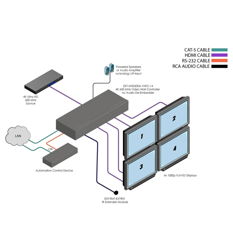 Gefen EXT-UHD600A-VWC-14 - Kontroler ściany wideo 1x4 4K Ultra HD 600MHz z ekstraktorem audio