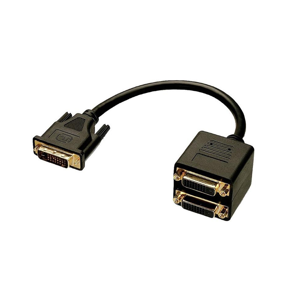 Oryginalny rozdzielacz od marki Lindy, który pozwala na podłączenie dwóch monitorów do pojedynczego portu DVI w komputerze.