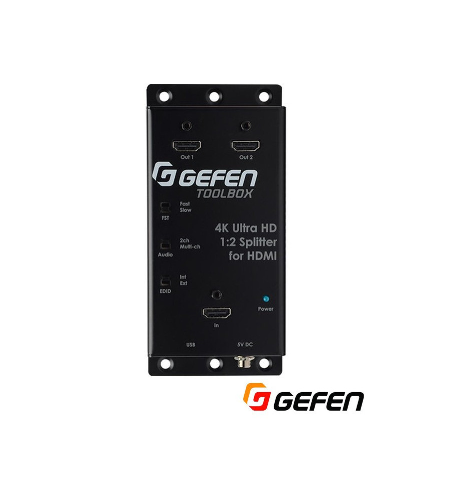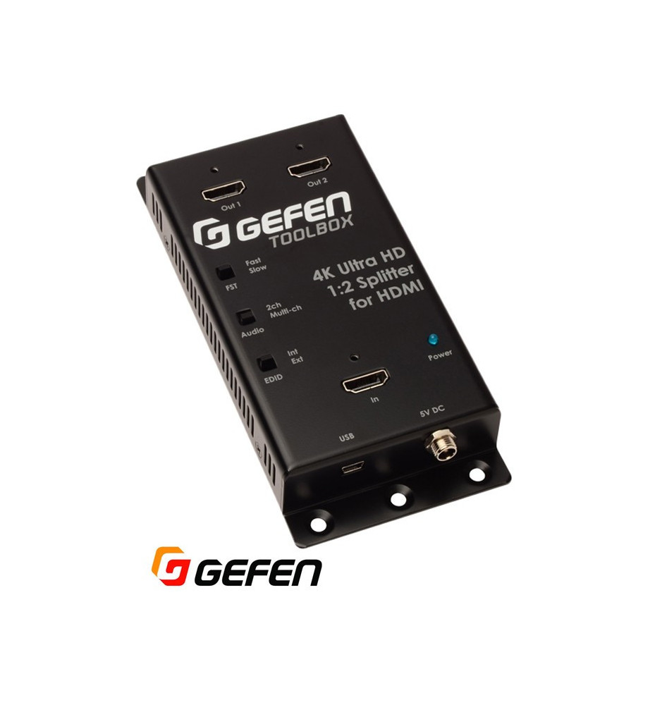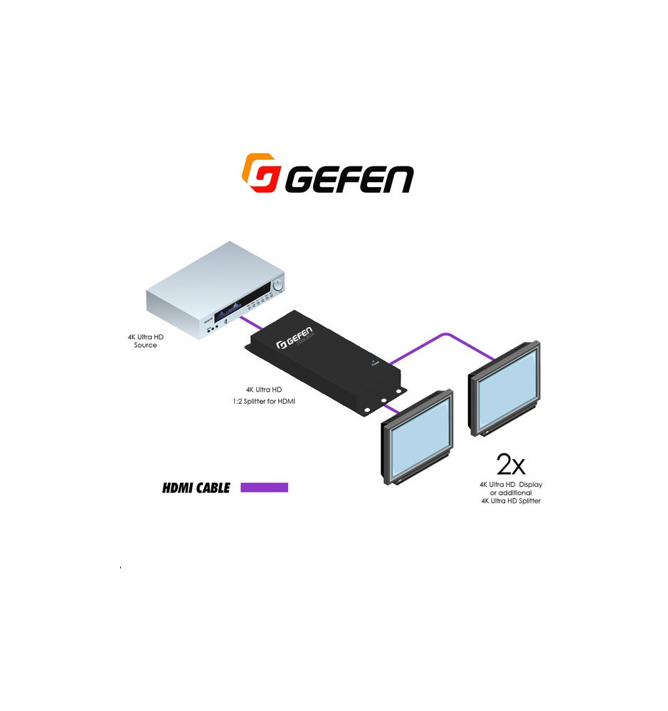 GEFEN GTB-HD4K2K-142C to profesjonalny, kompaktowy rozdzielacz - splitter sygnału z 1 urządzenia na 2 zupełnie różne wyświetlacze HDMI, obsługujący najwyższą jakością obrazu Ultra HD 4K x 2K.