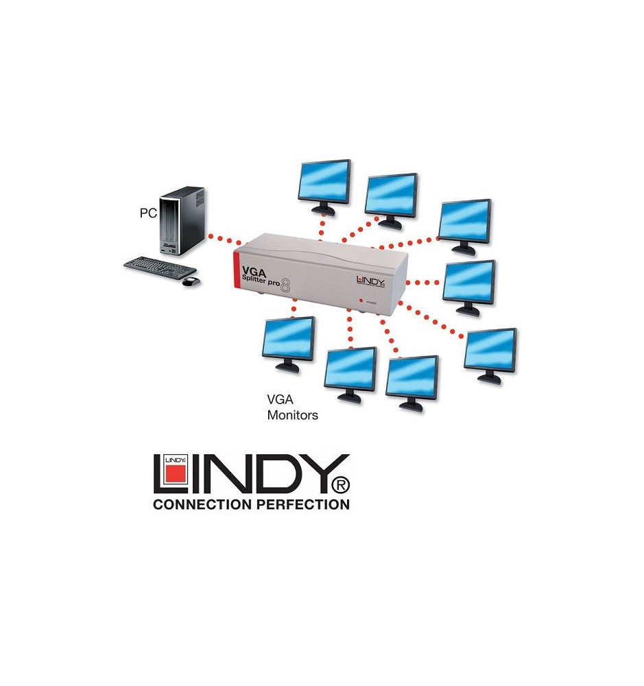 Rozdzielacz umożliwia rozdzielenie analogowego sygnału komputerowego na 8 monitorów.