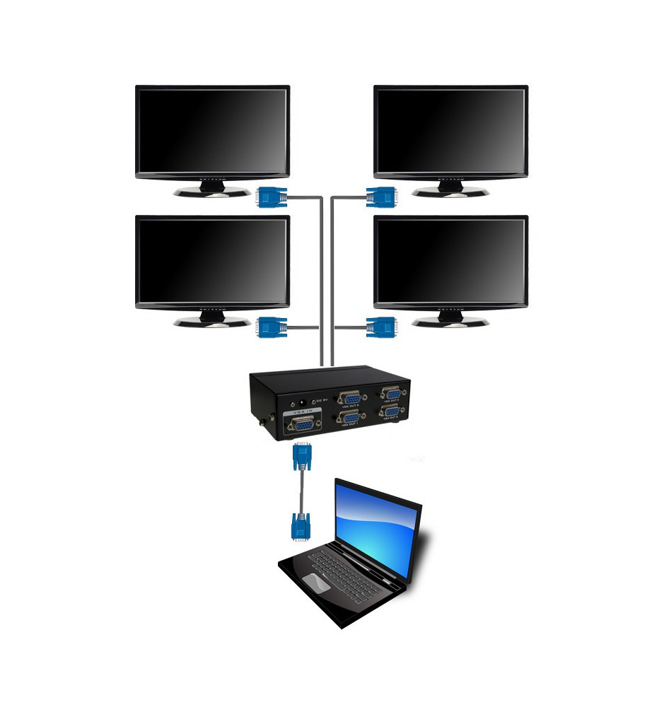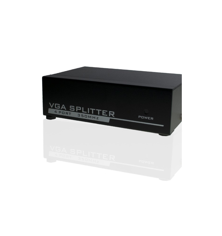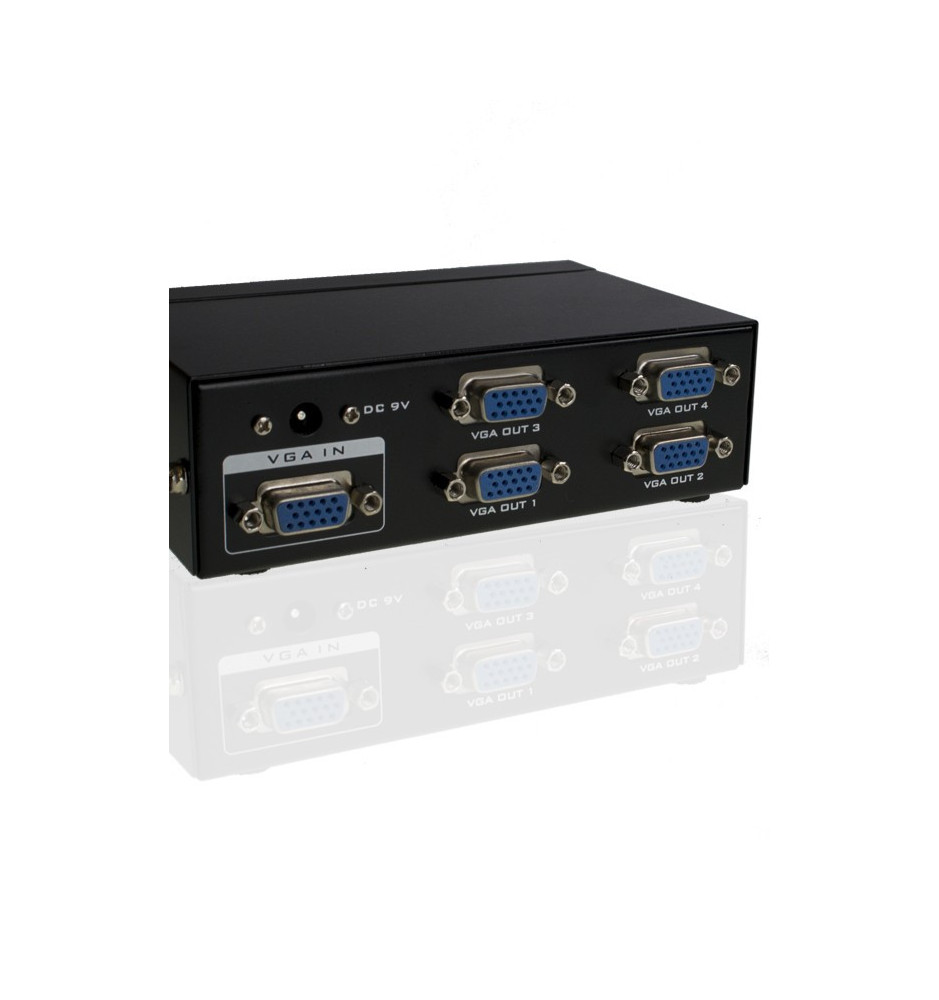 4-portowy Splitter VGA, to wysokiej jakości produkt pozwalający na rozdzielenie sygnału VGA do 4 zewnętrznych odbiorników, wykorzystujący sprawdzoną i niezawodną jakość interfejsu VGA.