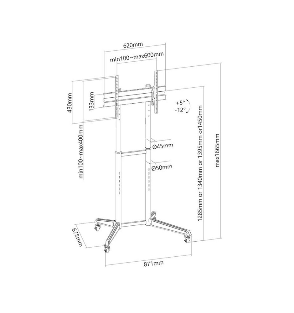 Przemyślany system zarządzania przewodami pozwala na ukrycie ich w konstrukcji stojaka i poprowadzenie ich od samego dołu aż do obudowy monitora. Możliwość regulacji wysokości od 128.5 do 145 cm oraz wychylenia w zakresie +5° / -12° pozwala na lepsze dopasowanie pozycji ekranu względem grupy odbiorców w trakcie prowadzenia np. prezentacji multimedialnej.