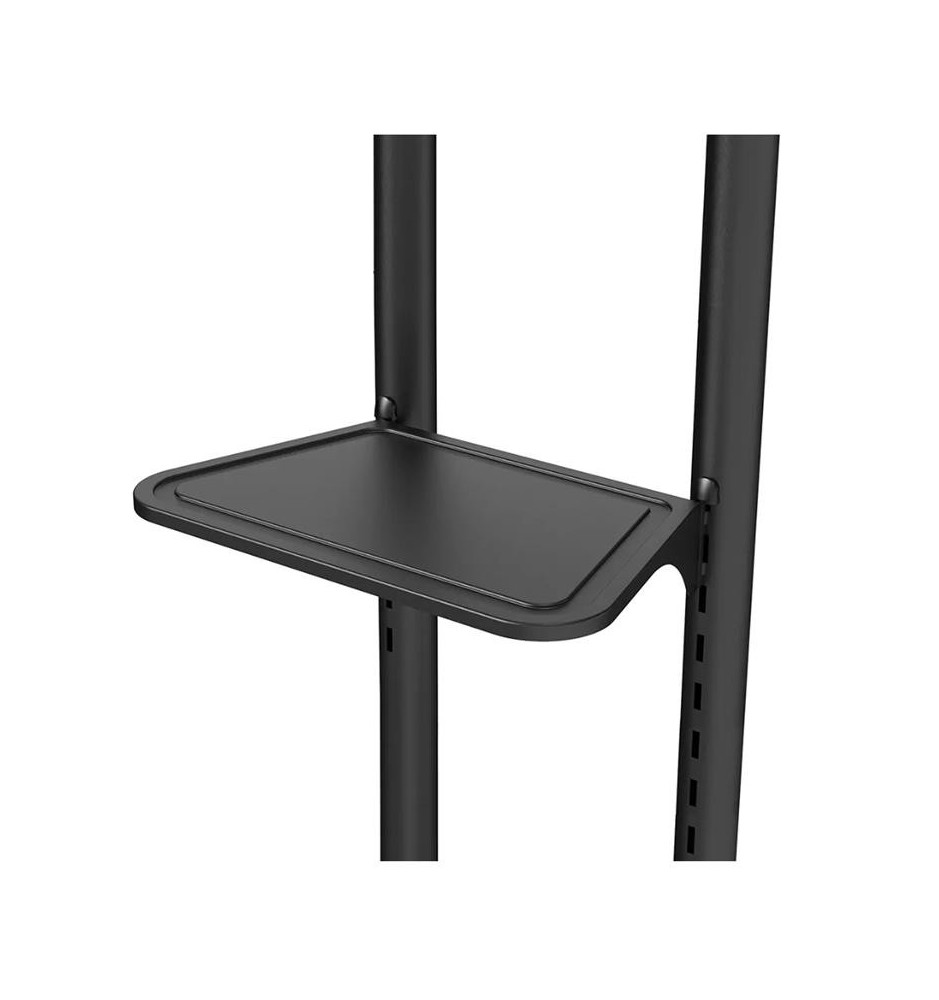 Wysokiej mobilności stojak do płaskich ekranów wyposażony w dodatkowe półki na akcesoria multimedialne oraz kamerę. Jest kompatybilny z ekranami o przekątnych w przedziale od 37" do 70".
