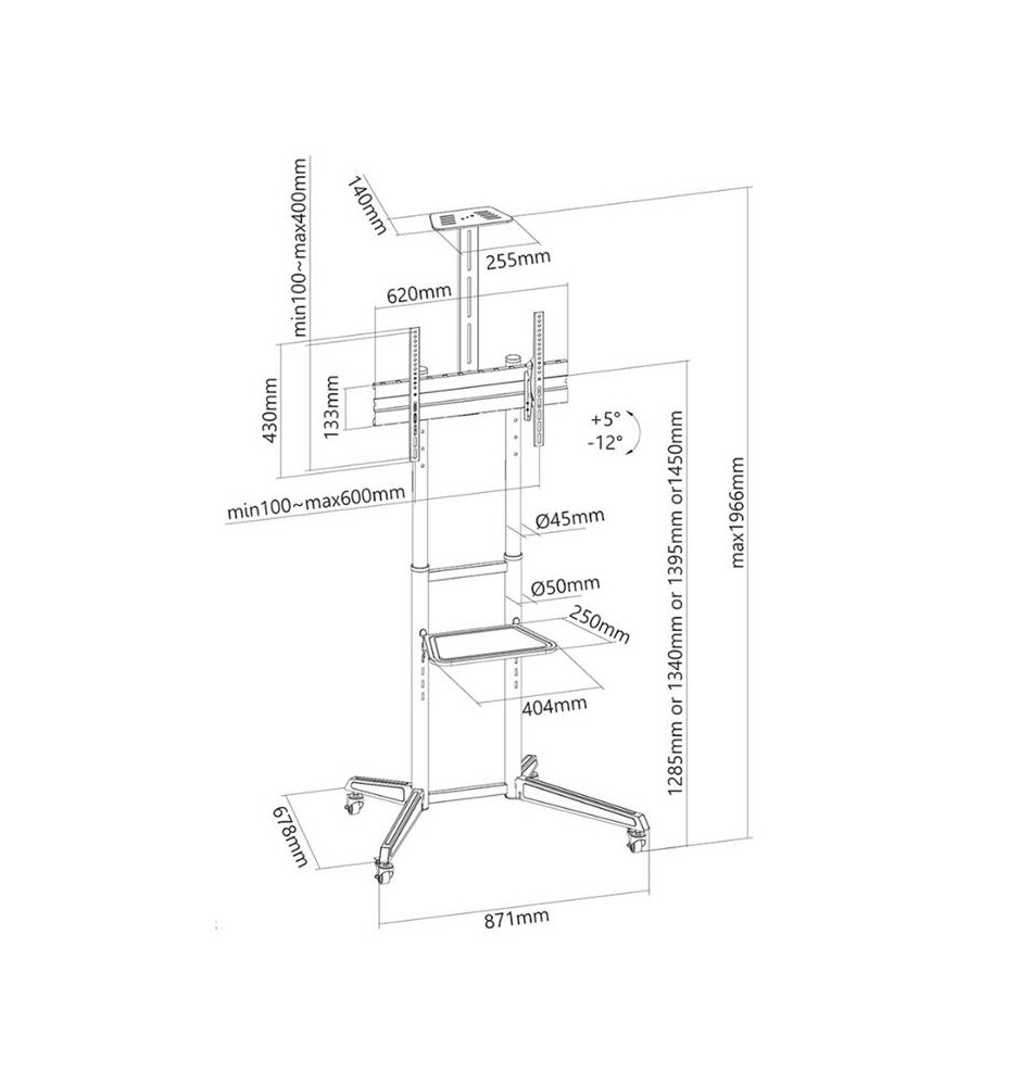Przemyślany system zarządzania przewodami pozwala na ukrycie ich w konstrukcji stojaka i poprowadzenie ich od samego dołu aż do obudowy monitora. Możliwość regulacji wysokości od 128.5 do 145 cm oraz wychylenia w zakresie +5° / -12° pozwala na lepsze dopasowanie pozycji ekranu względem grupy odbiorców w trakcie prowadzenia np. prezentacji multimedialnej.