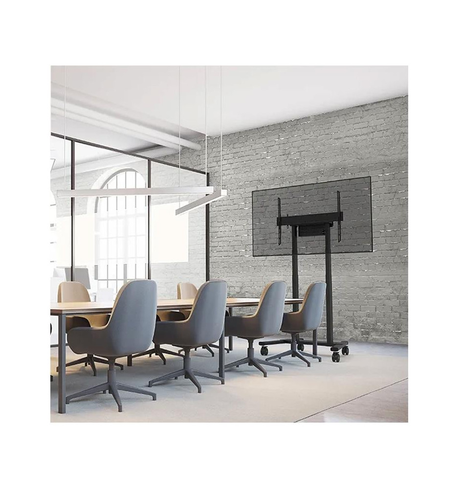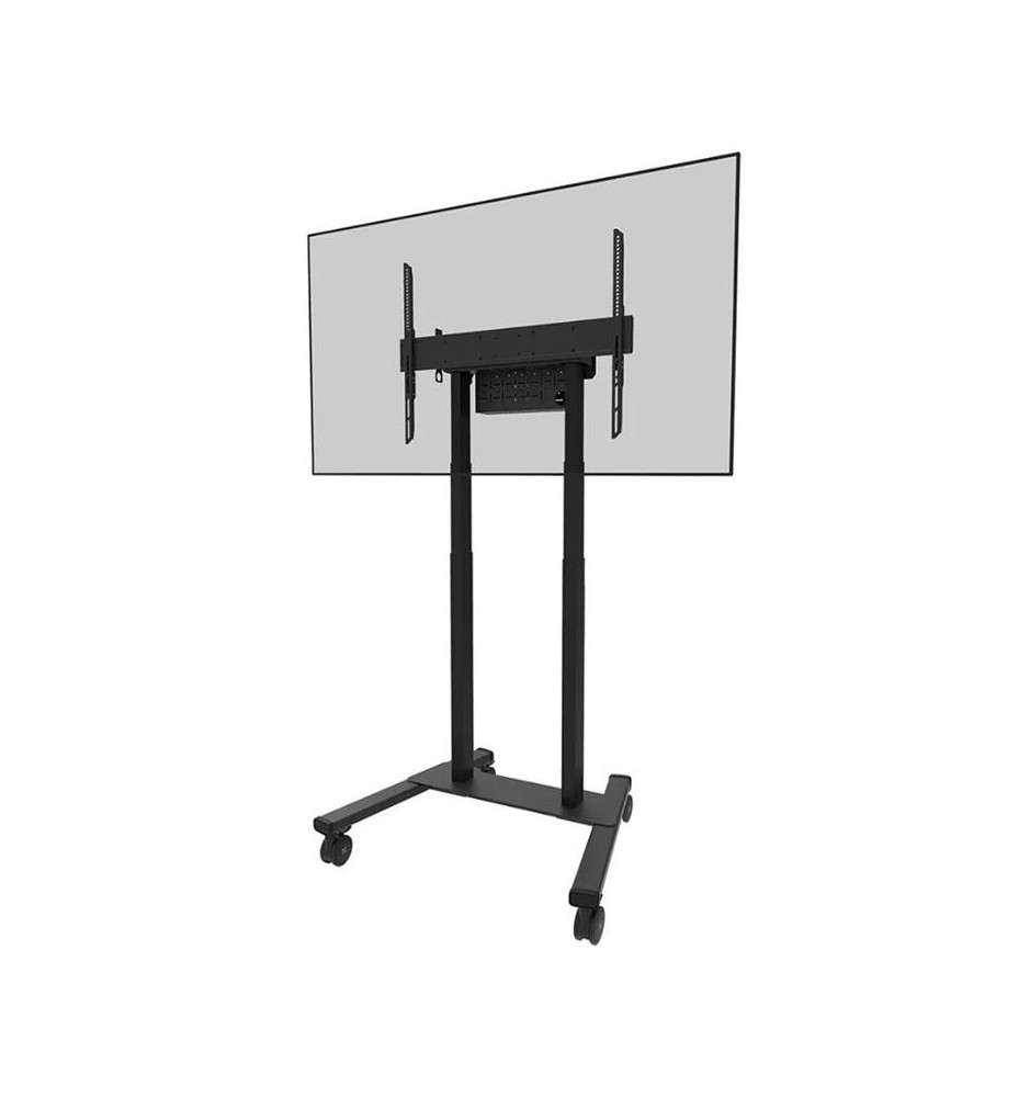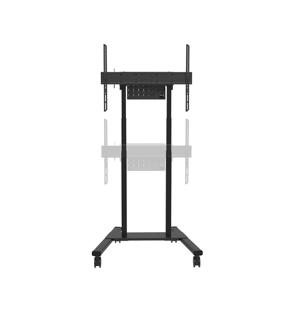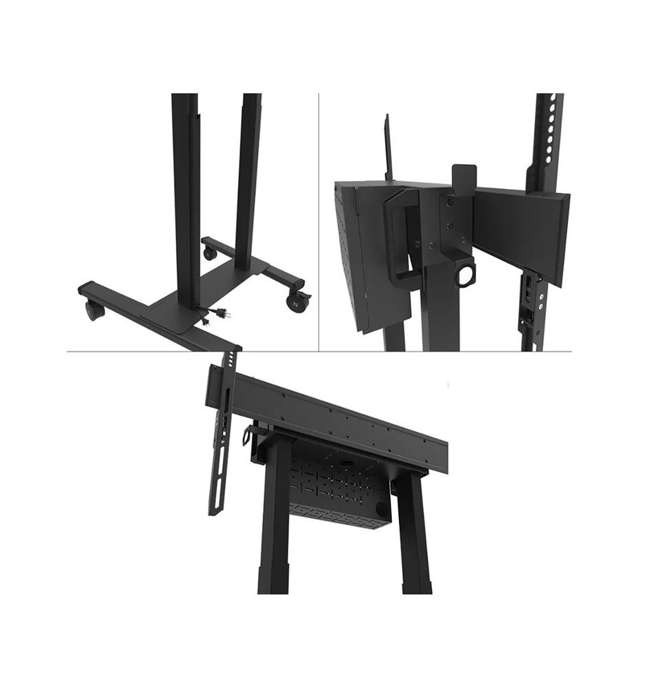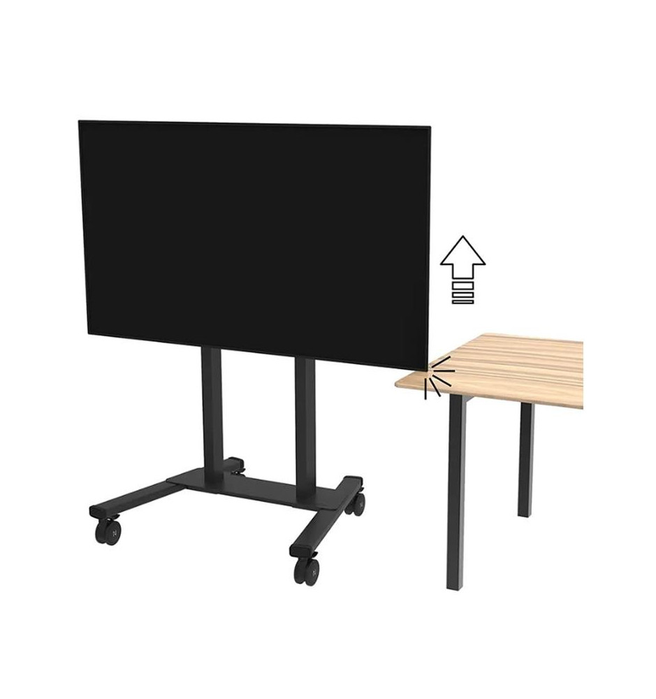 Mobilny stojak przeznaczony do użytkowania z ekranami o przekątnych w przedziale od 37" do 100". Prezentowany model został zaopatrzony w automatyczną regulację wysokości działającą w tempie 35 mm na sekundę. Cztery 10-centymetrowe, solidne kółka samonastawne z podwójną blokadą radzą sobie rewelacyjnie z progami w drzwiach, wykładzinami i dywanikami.