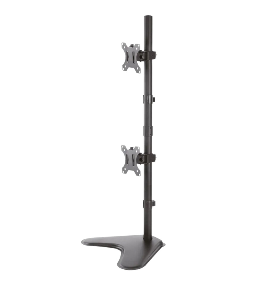 Wykonany ze stali, profesjonalny pionowy stojak biurkowy z uchwytami na dwa płaskie monitory komputerowe o przekątnej ekranu od 10" do 32".