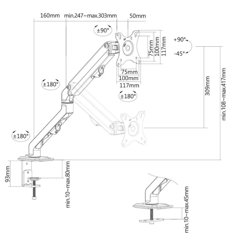 Profesjonalny, w pełni regulowany uchwyt biurkowy do płaskiego monitora komputerowego o przekątnej ekranu od 17" do 27".