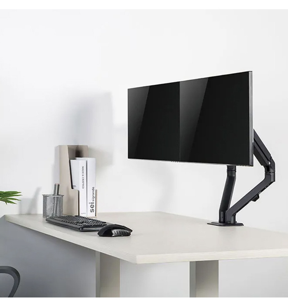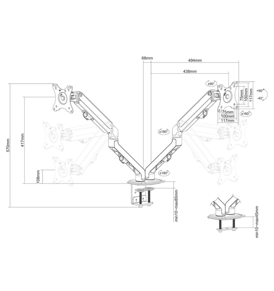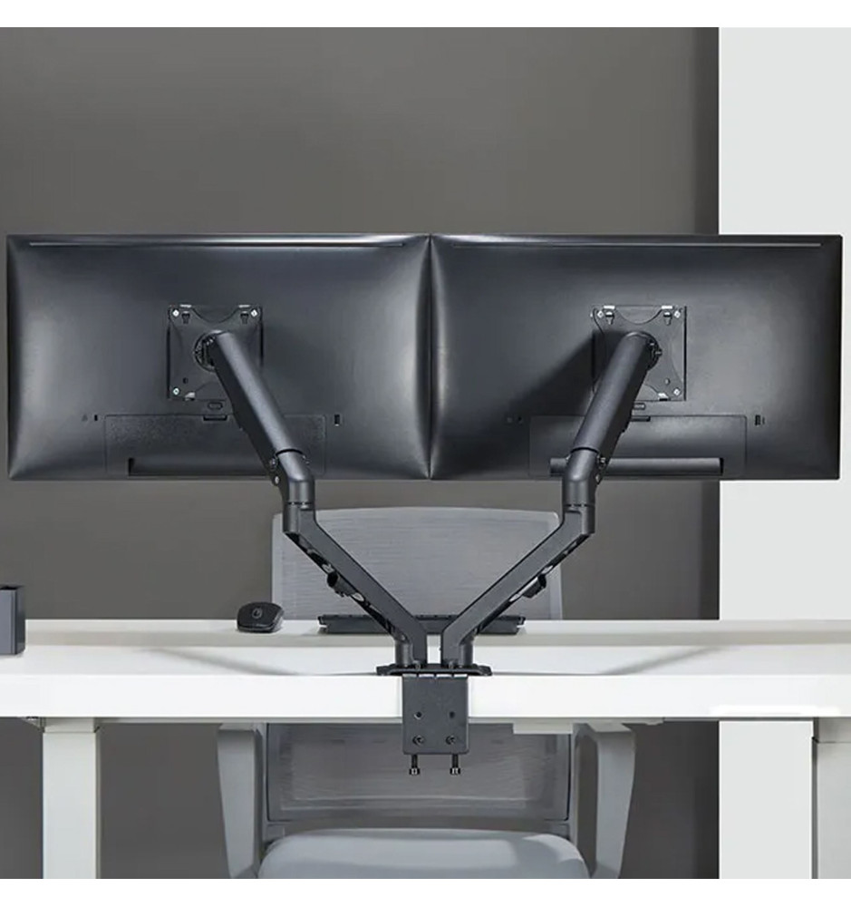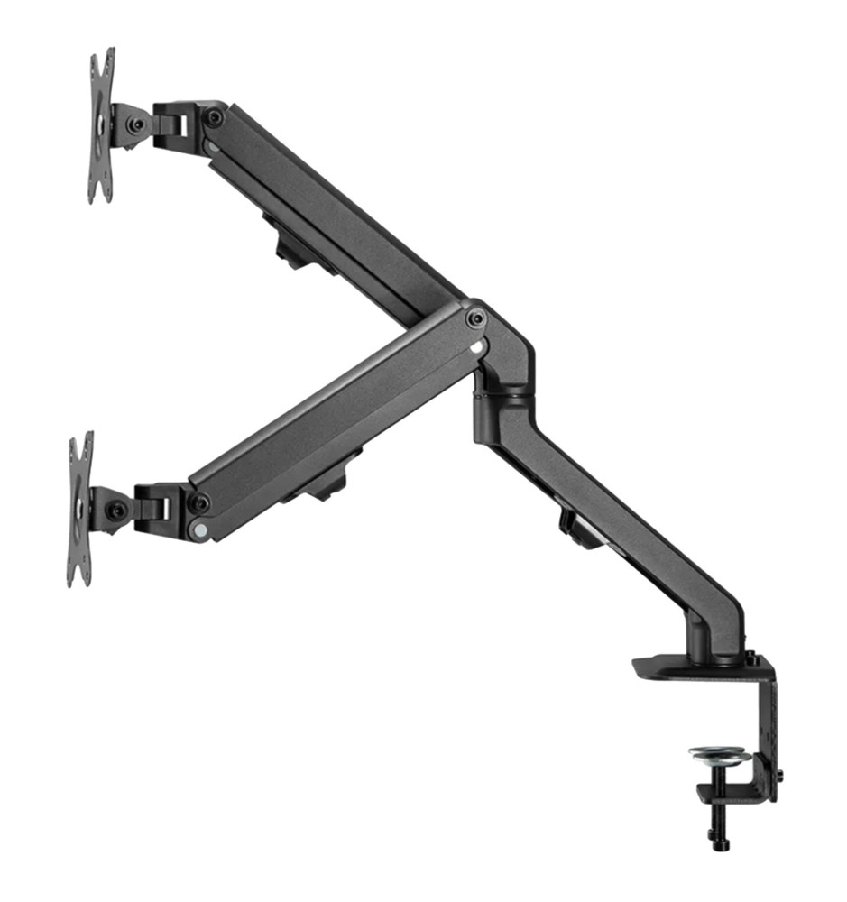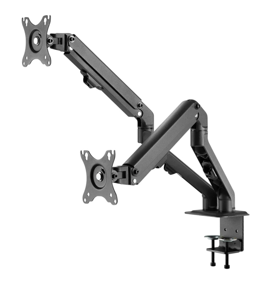 Profesjonalny, w pełni regulowany uchwyt biurkowy do dwóch płaskich monitorów komputerowych o przekątnej ekranu od 17" do 27". Uchwyt FPMA-D650D może być przymocowany przelotowo do blatu biurka lub za pomocą specjalnego zacisku.
