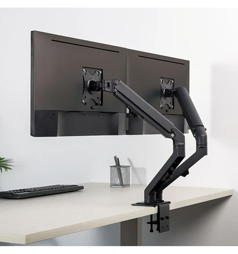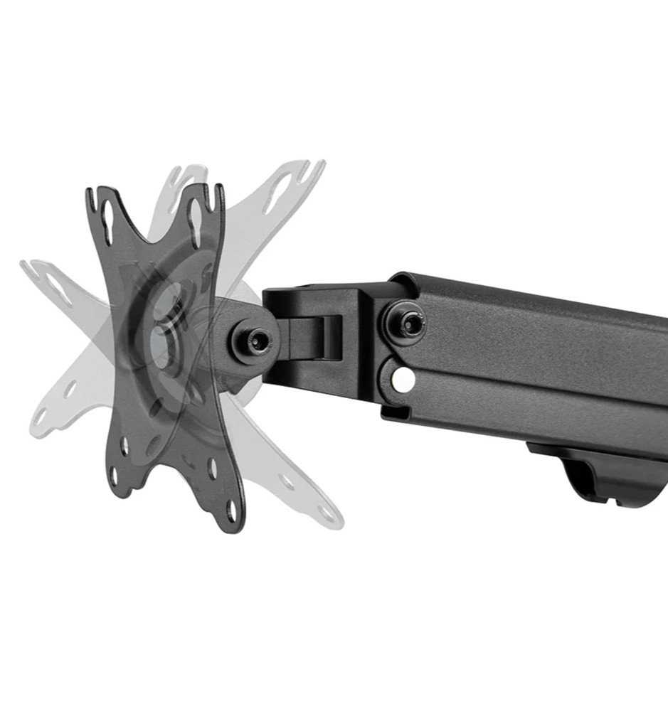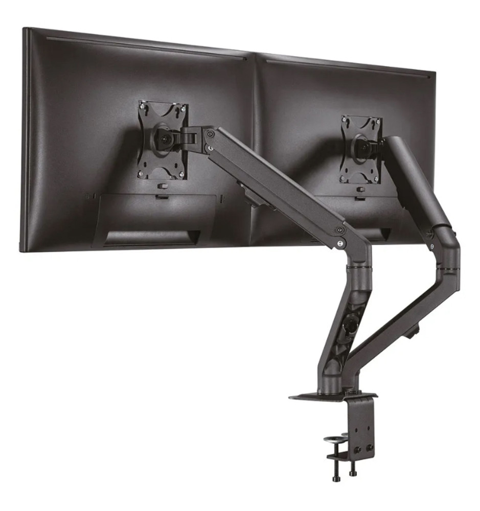 Profesjonalny, w pełni regulowany uchwyt biurkowy do dwóch płaskich monitorów komputerowych o przekątnej ekranu od 17" do 27".