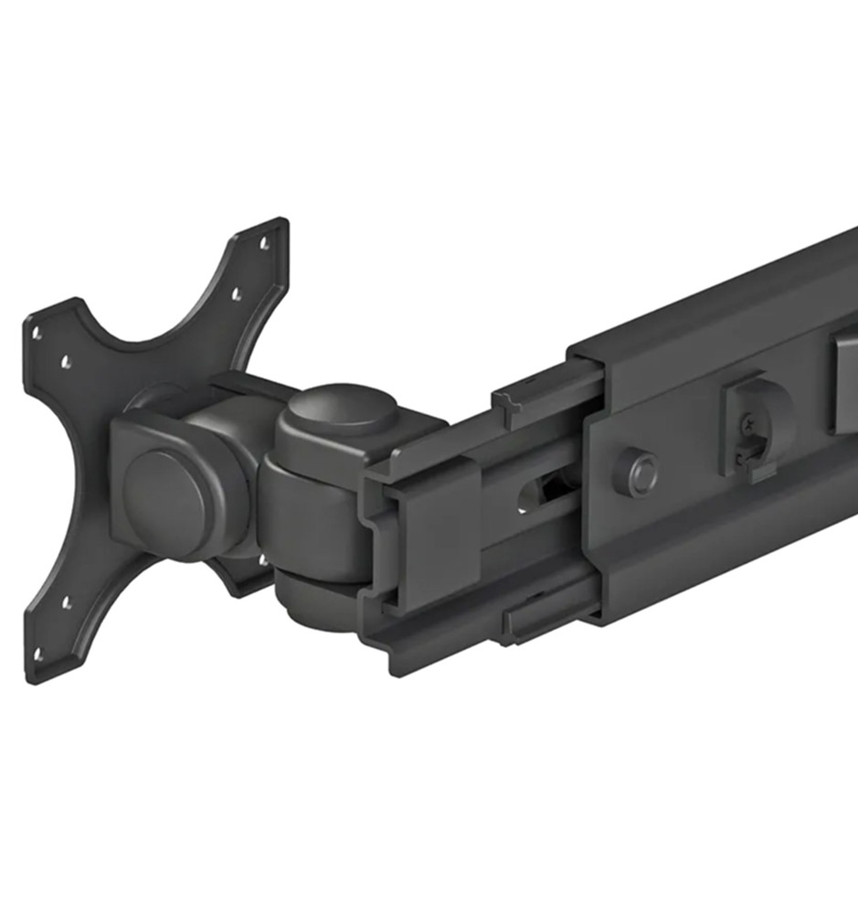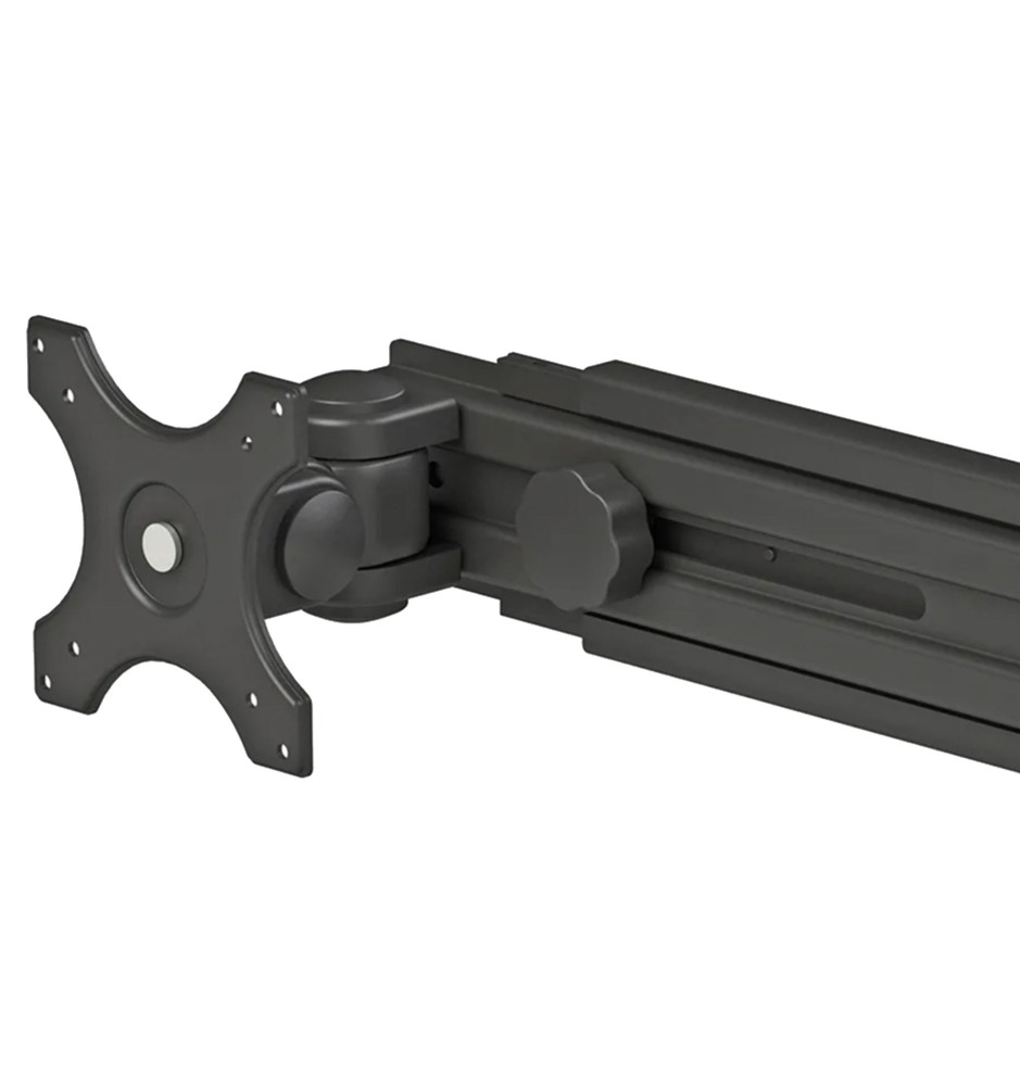 Wysokość i szerokość ramion stojaka może być ręcznie dostosowana. Regulacja pochylenia oraz obrotu indywidualnie dla każdego z ekranów umożliwia ich optymalne ustawienie. Innowacyjny system zarządzania przewodami pozwala na estetyczne poprowadzenie kabli wewnątrz stojaka do zamontowanych płaskich ekranów.