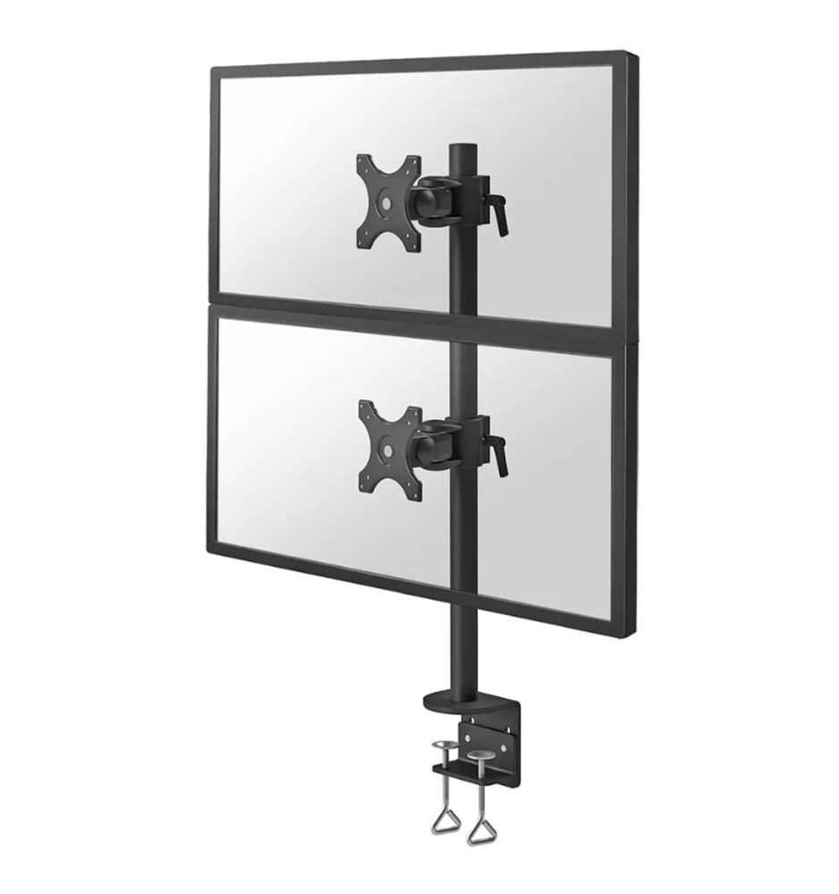 Stojak biurkowy Neomounts by Newstar FPMA-D700DV został zaprojektowany do montażu dwóch płaskich monitorów komputerowych, ustawionych jeden nad drugim, których otwory montażowe spełniają wymogi standardów VESA 75x75mm lub 100x100mm. Zaleca się, aby przekątna ekranu instalowanych monitorów wynosiła od 10 do 27 cali (69 cm), a ich waga nie przekraczała 6 kg.