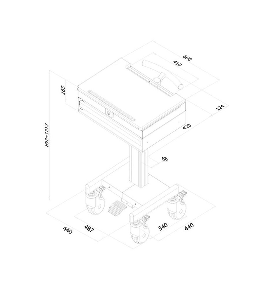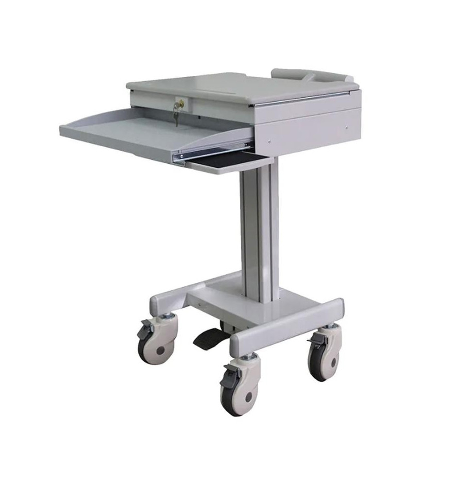 Wózek MED-M100 został zaopatrzony w możliwość regulacji wysokości w przedziale 89.2 - 121.2 cm, co pozwoli na idealnie dopasowanie stojaka względem użytkownika. Przełoży się to bezpośrednio na zwiększoną ergonomię i komfort pracy. Przemyślany system zarządzania przewodami pozwoli zachować porządek na swoim stanowisku roboczym. Wytrzymałe kółka bez problemu dają sobie radę ze standardowymi progami w drzwiach, dzięki czemu wózek można bezproblemowo przemieszczać z miejsca na miejsce.