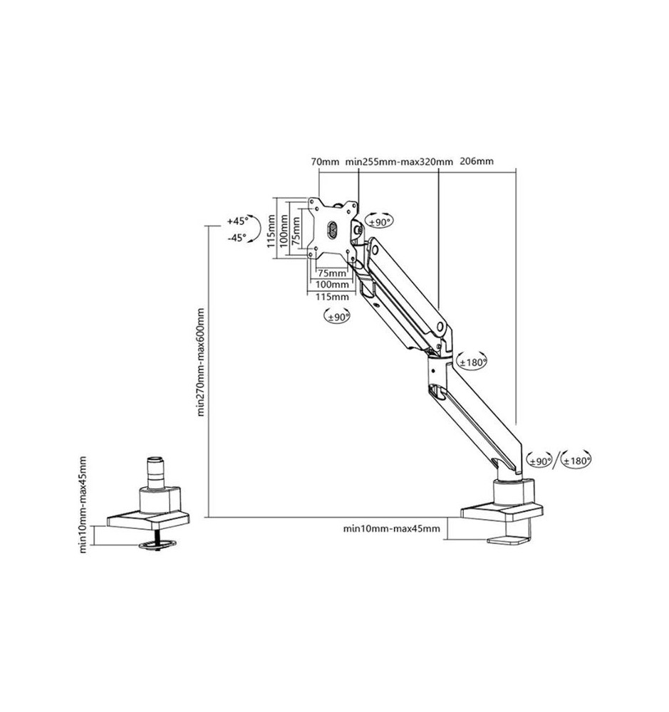 Montowany do blatu biurka za pomocą zacisku, profesjonalny uchwyt do monitorów komputerowych o zakresie przekątnych ekranu od 10" do 32".