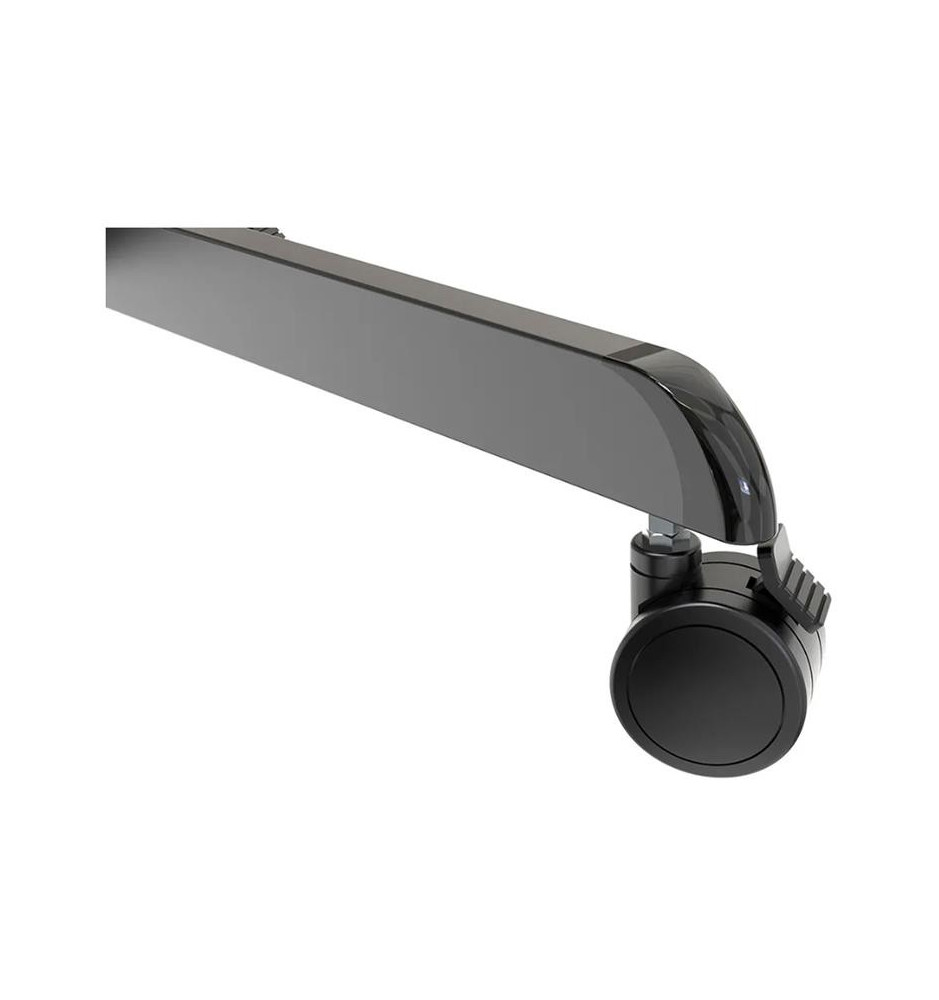 Neomounts NS-M1250 jest bardzo mobilnym stojakiem, który zaopatrzono w cztery solidne kółka skrętne. Dwa, przednie z nich, wyposażone są w hamulce umożliwiające pewne zatrzymanie go w miejscu. W prezentowanym modelu wyzwania nie stanowią także drzwi i progi, które stojak pokonuje bez problemu.