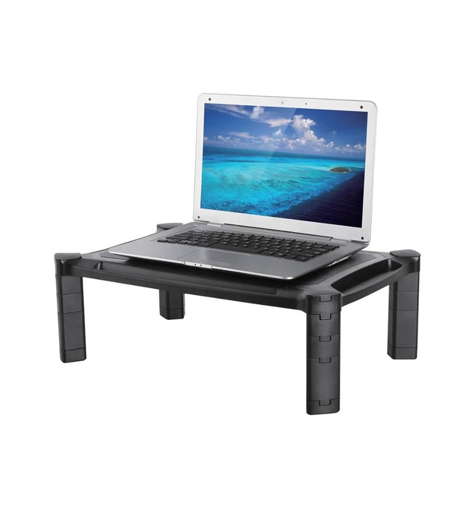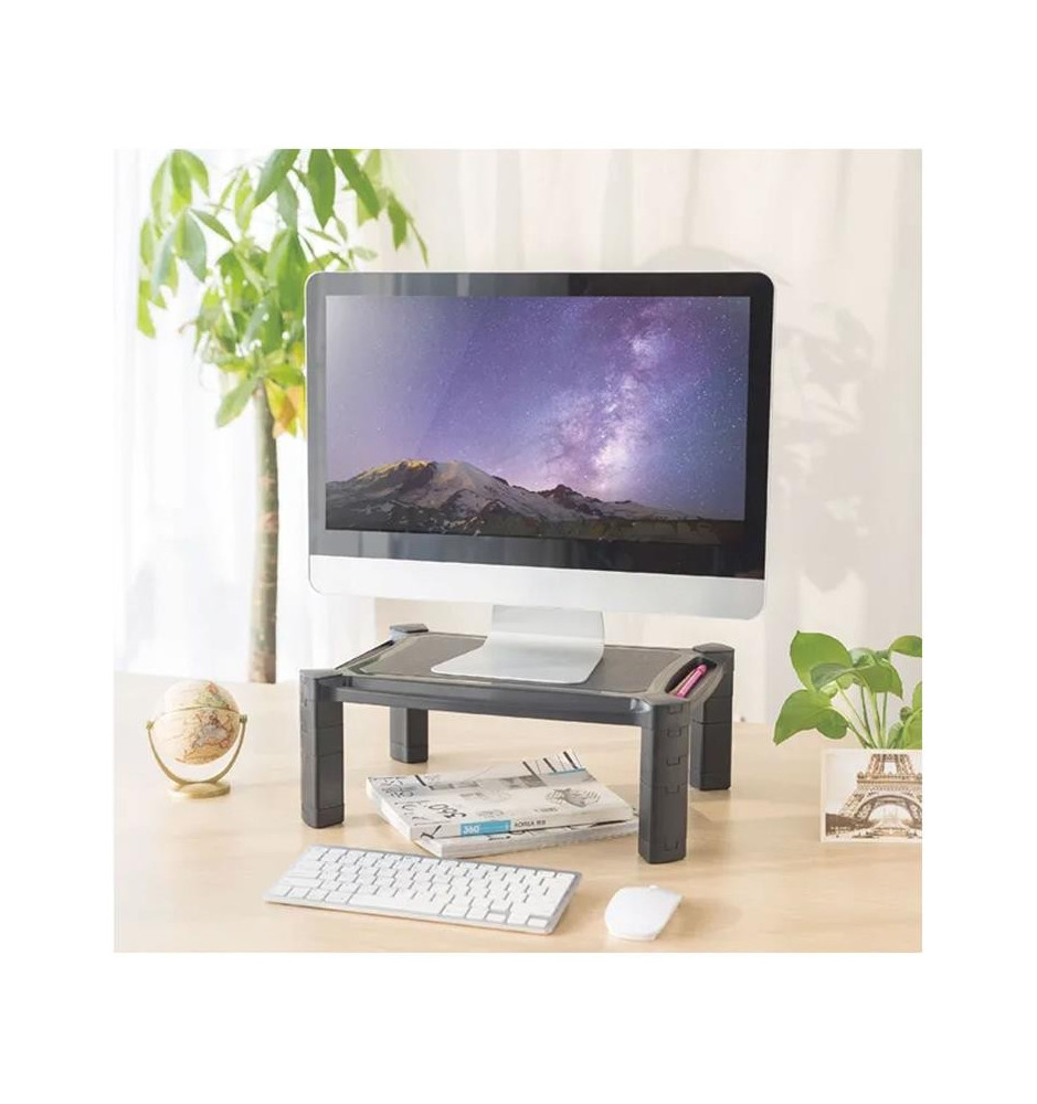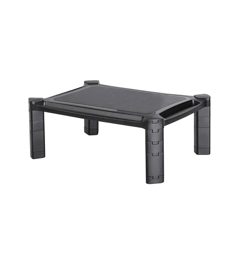 Zastosowanie NSMONITOR20 pozwoli na zwiększenie wysokości Twojego ekranu względem biurka między 4.6, a 16.8 cm. Wysokość można regulować ręcznie wedle uznania dzięki modułowej konstrukcji nóżek. To od Ciebie zależy ile modułów wykorzystasz i na jaką wysokość ustawisz swoją podkładkę. Samo łączenie elementów jest błyskawiczne i nie wymaga użycia żadnych dodatkowych narzędzi. Taka konstrukcja pozwoli na zajęcie wygodniejszej pozycji względem monitora, co pomoże uniknąć dolegliwości szyi i pleców.