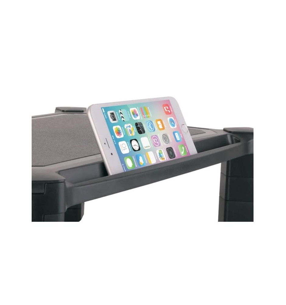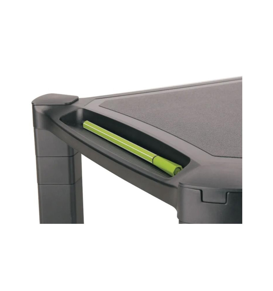 Podstawka marki Neomounts by Newstar zrobiona z wytrzymałego tworzywa sztucznego, która jest w stanie utrzymać obciążenie do 10 kg. Można na niej umieścić np. laptopa lub płaski monitor. Dodatkowo zaopatrzono ją w przegródki, które można wykorzystać do umieszczania w nich długopisów, ołówków czy telefonu komórkowego.
