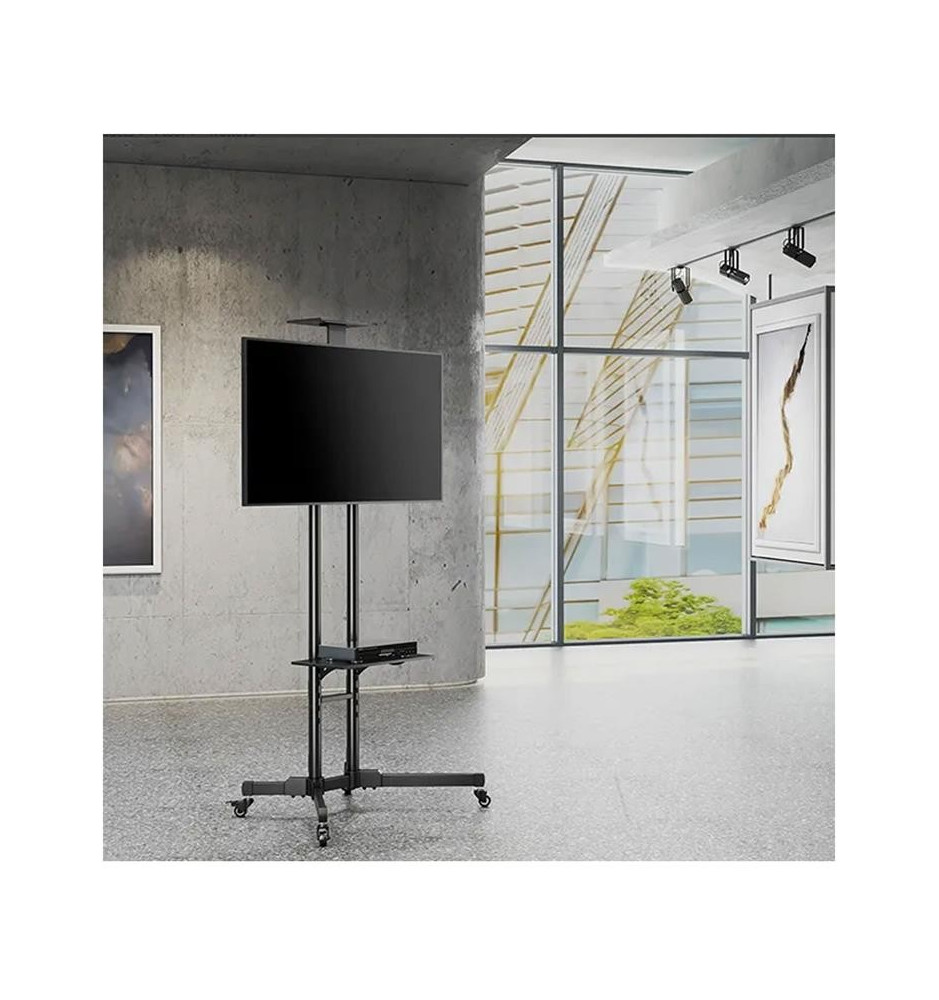 Wysokiej mobilności stojak do płaskich monitorów o przekątnych ekranu w zakresie 32" - 70". Pozwoli zaoszczędzić miejsce na ścianie i suficie oraz dowolnie przemieszczać zamontowany na nim telewizor.