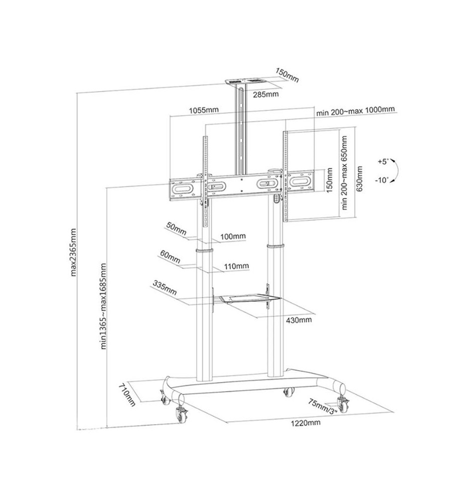 Neomounts PLASMA-M1950E - Mobilny wózek / stojak podłogowy do TV 60" - 100"