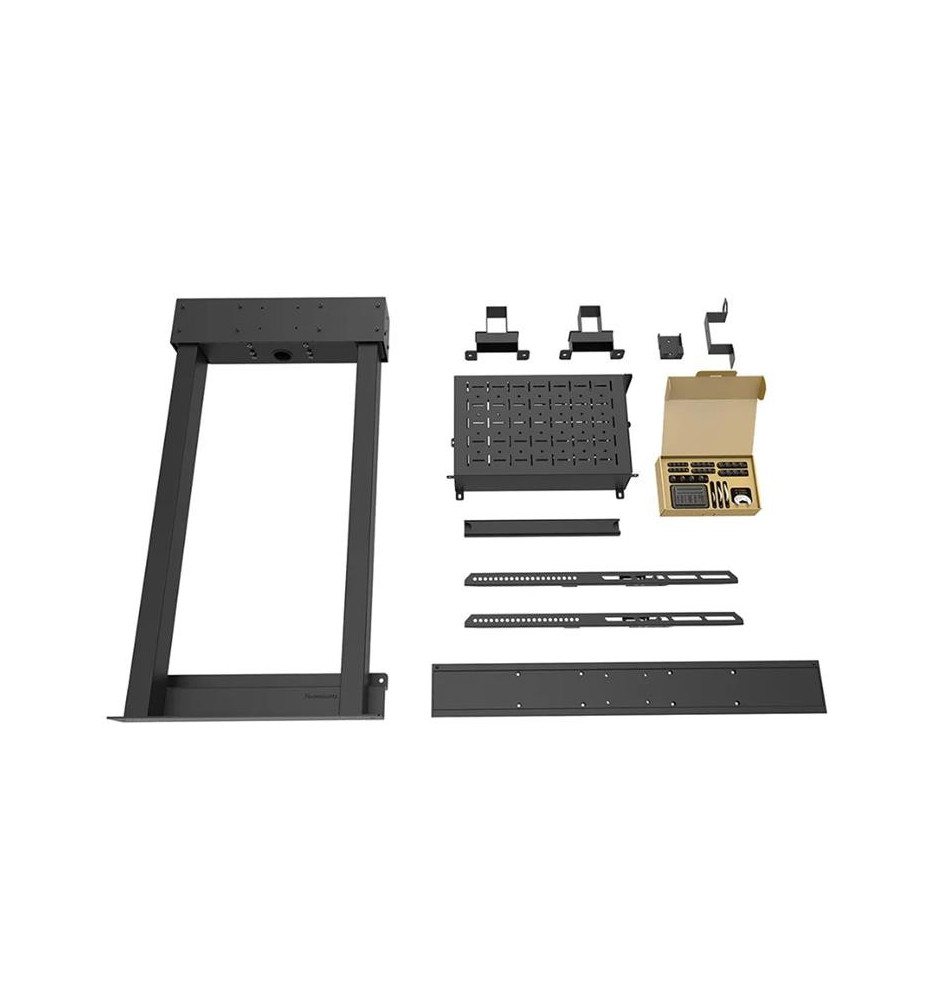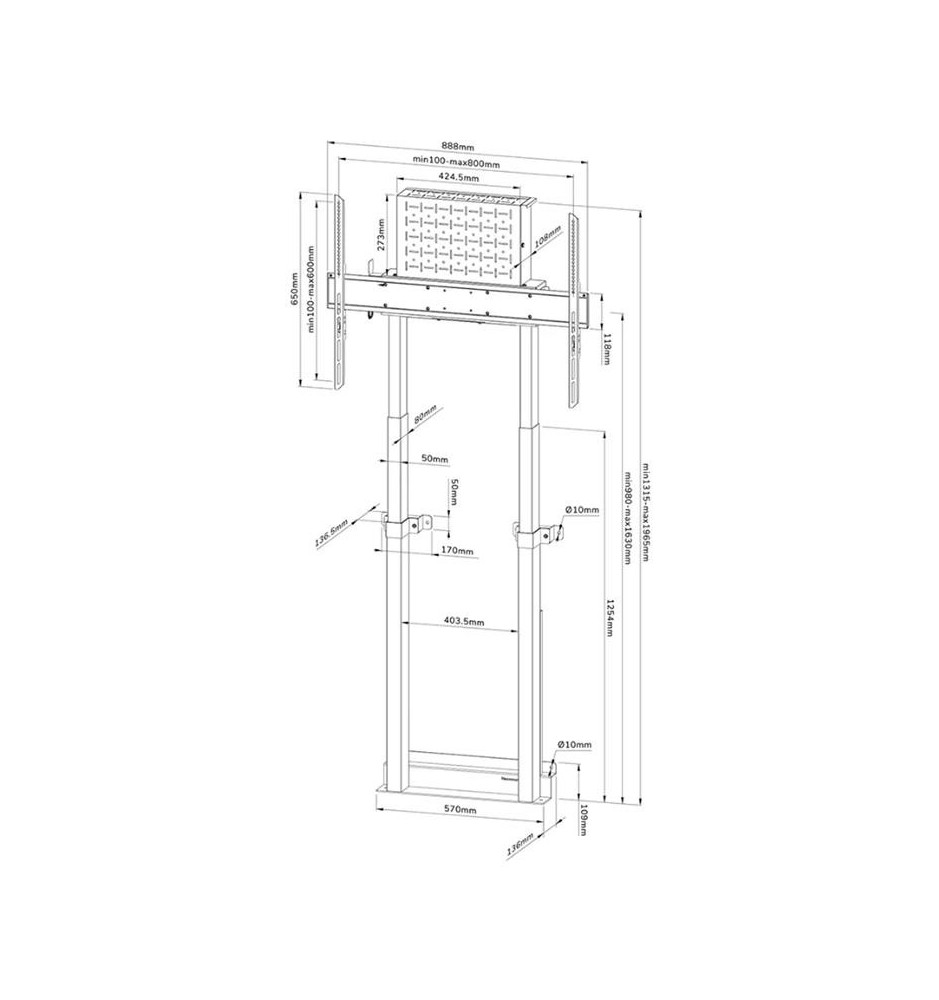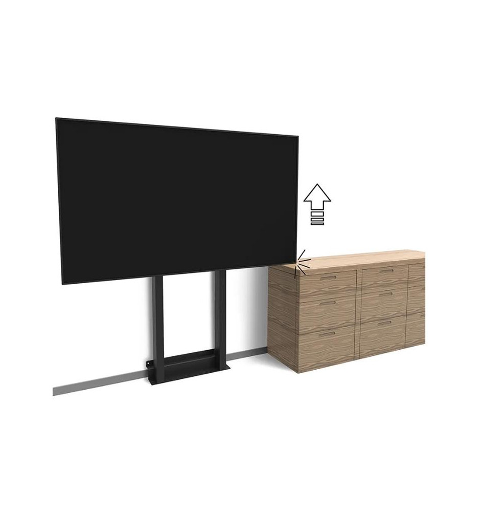 Regulowany uchwyt przystosowany do instalacji na nim monitorów o przekątnych w przedziale od 37" do 100". Sterowana przy użyciu pilota przewodowego regulacja wysokości działa w tempie 35 mm na sekundę. Dołączona do kompletu płyta podłogowa oprócz zapewniania dodatkowej stabilności i bezpieczeństwa zamontowanego ekranu, została dodatkowo zaopatrzona w przestrzeń na listwy przypodłogowe.