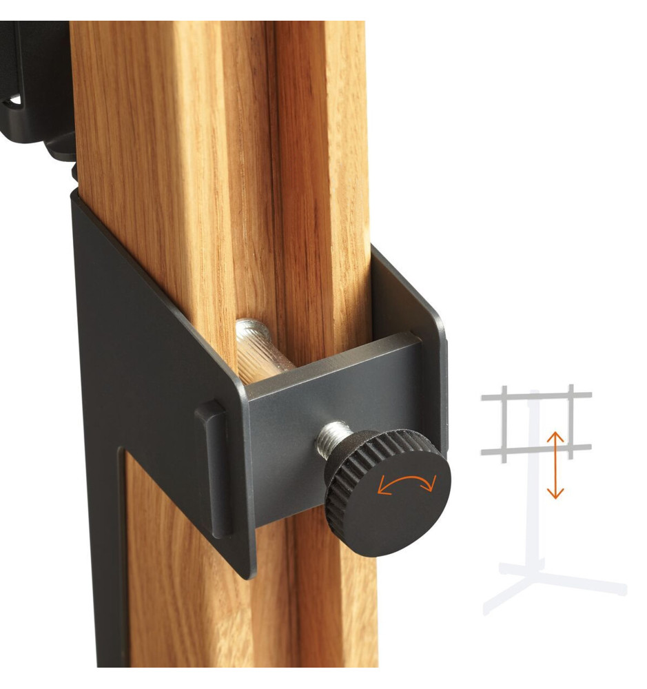 Stojak pod telewizor TVS 3695 posiada wytrzymałą i stylową konstrukcję, zbudowaną ze stali najwyższej jakości oraz naturalnego dębowego drewna klasy premium z certyfikatem PEFC, zapewniającą bezpieczeństwo oraz możliwość łatwego dostosowania zainstalowanego telewizora. Oprócz regulacji wysokości, posiada unikalny mechanizm OneFinger Movement™, pozwalający na bezwysiłkowe i płynne obrócenie ekranu do 90°.