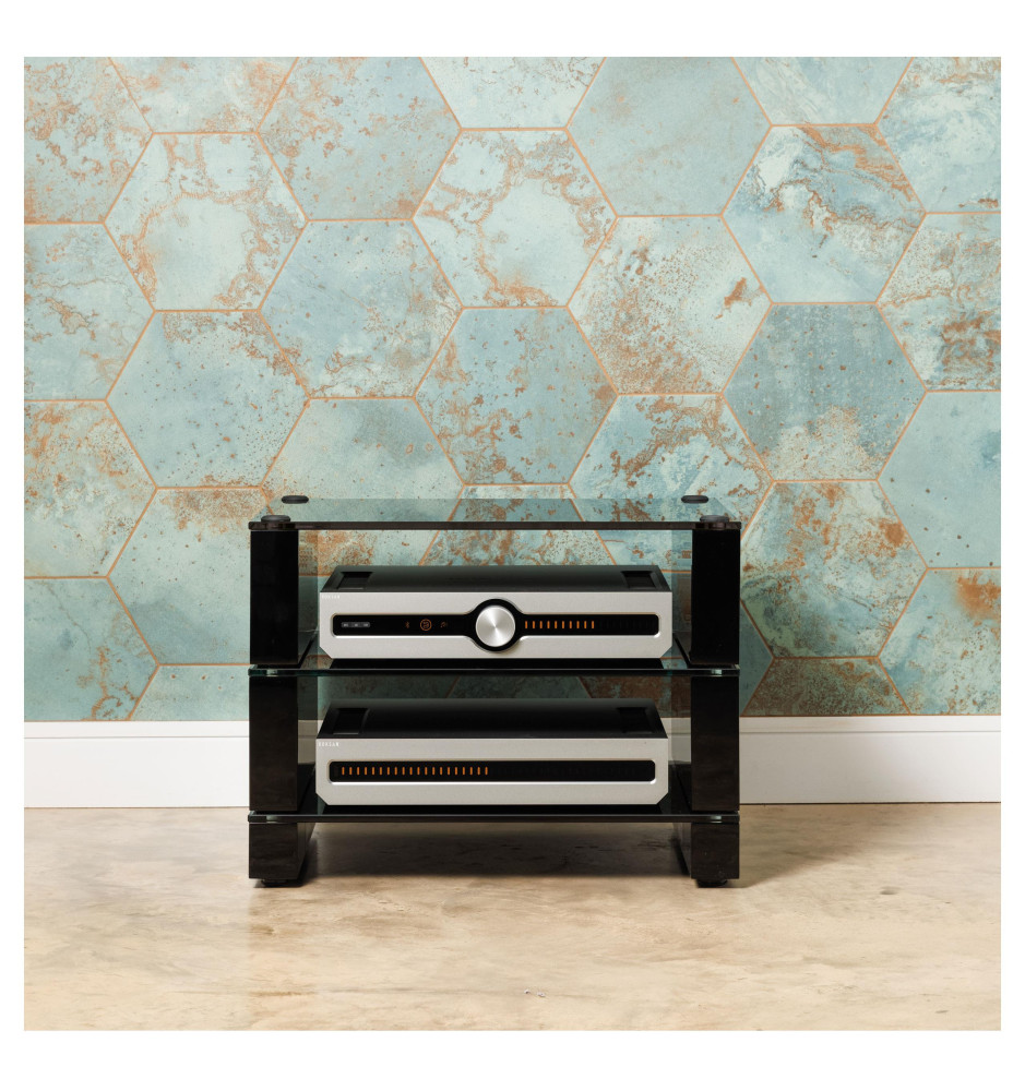 Nowoczesny stolik o modułowej konstrukcji dostosowanej do dalszej rozbudowy w ramach serii stolików Styx 2G. Każdy z produktów tej serii dzięki bardzo precyzyjnemu wykonaniu pasuje do siebie idealnie i pozwala osiągnąć idealną akustykę każdemu umieszczonemu na nim sprzętowi.