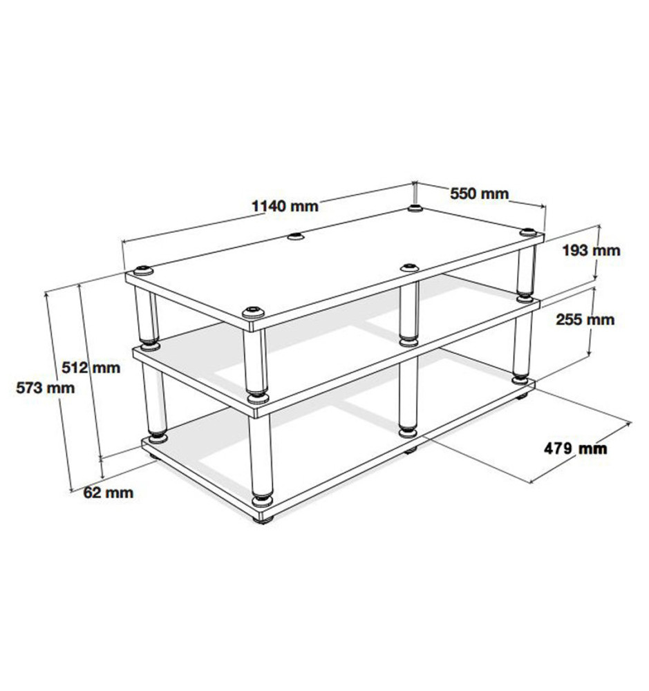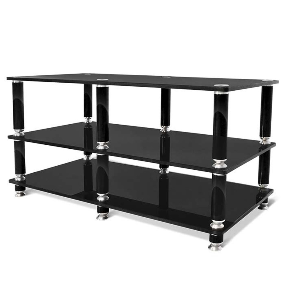Dedykowany pod telewizor i do przechowywania sprzętów Hi-Fi oraz AV, solidny i funkcjonalny stolik ze szklanymi półkami o unikalnej modułowej konstrukcji.