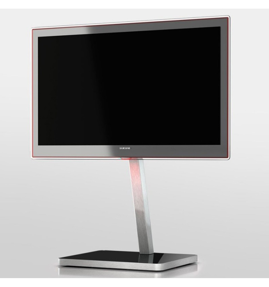 Niezwykle stylowy stojak z uchwytem na telewizor o przekątnej ekranu do 52" oraz podstawą o szklanej powierzchni, idealną jako półka na urządzenia audio / wideo.