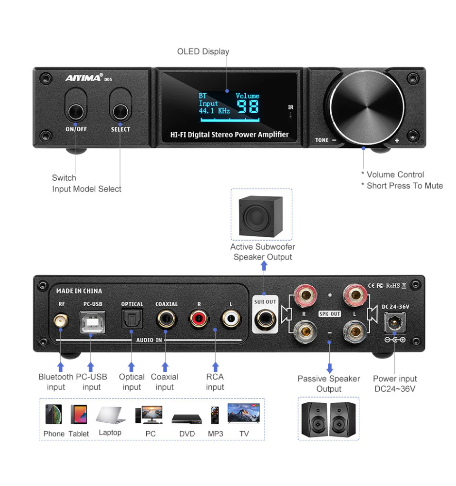 AIYIMA D05 – High-endowy wzmacniacz stacjonarny z Bluetooth 5.0