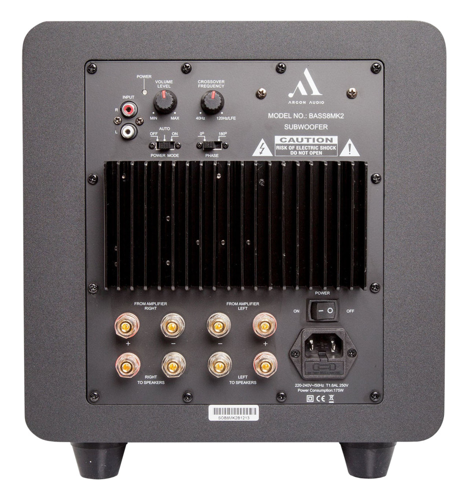 Subwoofer BASS8 MK2 został specjalnie dostrojony, aby idealnie współpracować z zestawami głośników od Argon Audio. Umieszczony z tyłu panel zapewnia pełną kontrolę nad subwooferem poprzez regulację głośności, częstotliwości zwrotnicy oraz fazy (0/180 stopni). Dodatkowo posiada funkcję automatycznego włączania i wyłączania.