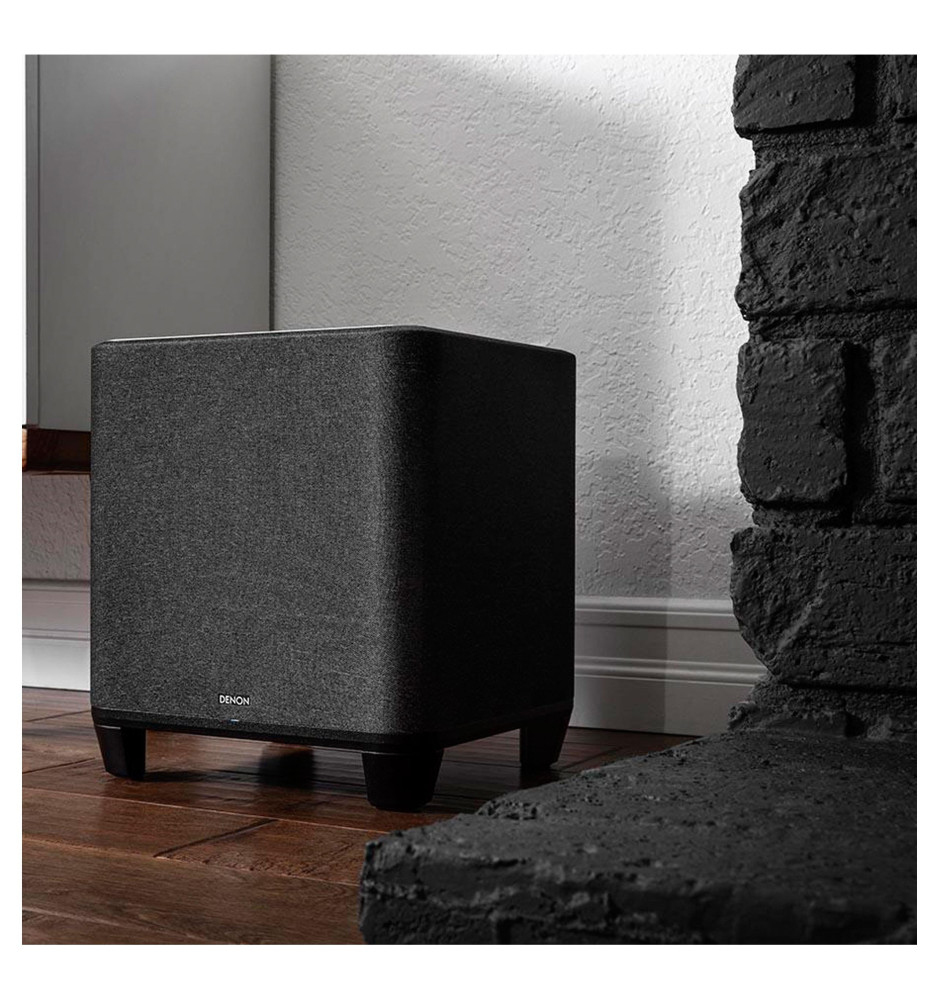 Subwoofer bezprzewodowy z 8-calowym przetwornikiem. Dzięki technologii HEOS Built-in można bezprzewodowo połączyć go np. z soundbarem oraz parą głośników Denon z serii Home, aby uzyskać prawdziwy dźwięk przestrzenny 5.1.