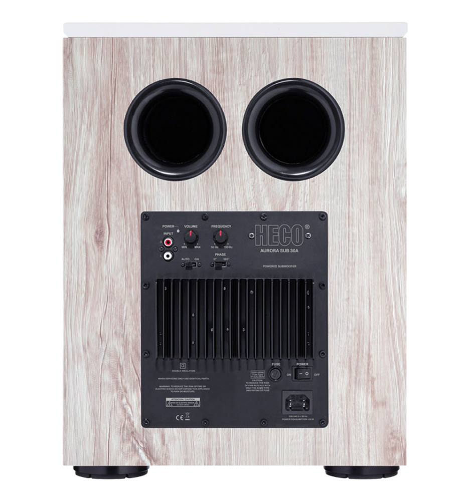 Jako przedstawiciel serii Aurora, Sub 30A urzeka swoim eleganckim wyglądem i wyjątkowymi właściwościami akustycznymi. Doskonałą prezencję subwoofera Aurora uzyskano poprzez zastosowanie matowego, jedwabistego lakieru połączonego z nowoczesnym dekorem imitującym drewno.