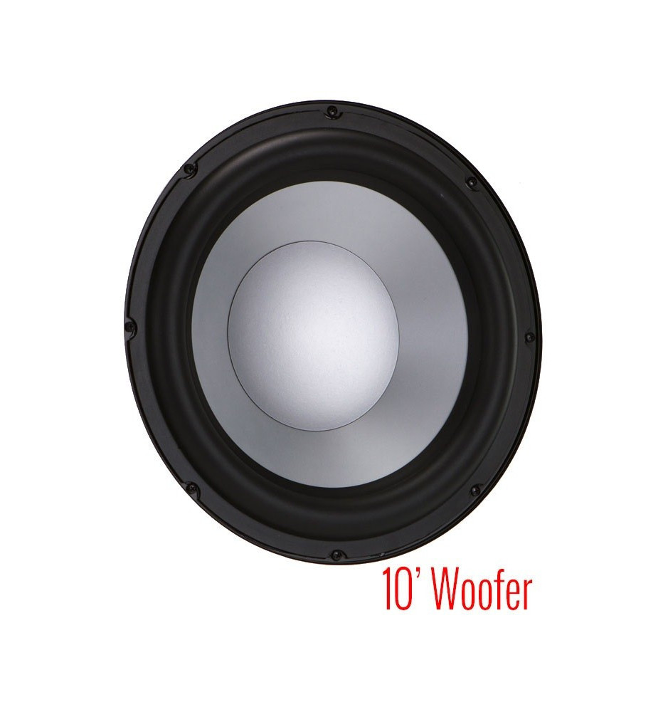 10 calowy (25,4 cm) głośnik basowy wykonany z aluminizowanych włókien pozwala na osiągnięcie czystego, mocnego i dobrze zdefiniowanego dźwięku, który wzbogaci brzmienie każdego zestawu audio lub kina domowego.