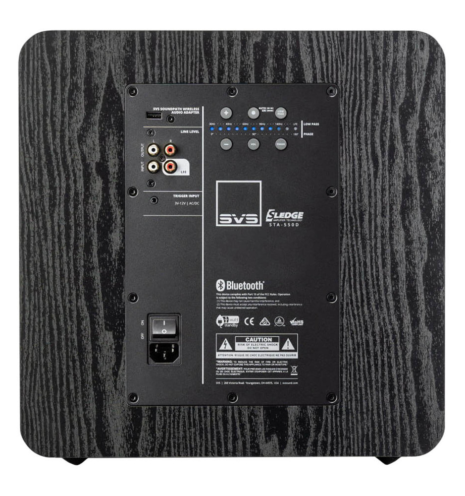 Za ogromną moc subwoofera SVS SB-2000 Pro odpowiada wzmacniacz DSP Sledge STA-550D oferujący 550W mocy RMS i 1500W mocy szczytowej. Wzmacniacz posiada unikalną konstrukcję wykorzystującą wydajność klasy D z możliwością przenoszenia dużych ilości prądu poprzez tranzystory MOSFET. W ten sposób zachowuje idealnie brzmienie niezależnie od poziomu głośności. Procesor DSP o wysokiej rozdzielczości 50MHz poprzez dostrojenie do pomieszczenia, optymalizację pasma przenoszenia i odpowiednie ustawienie parametrów DSP zapewnia perfekcyjne brzmienie.