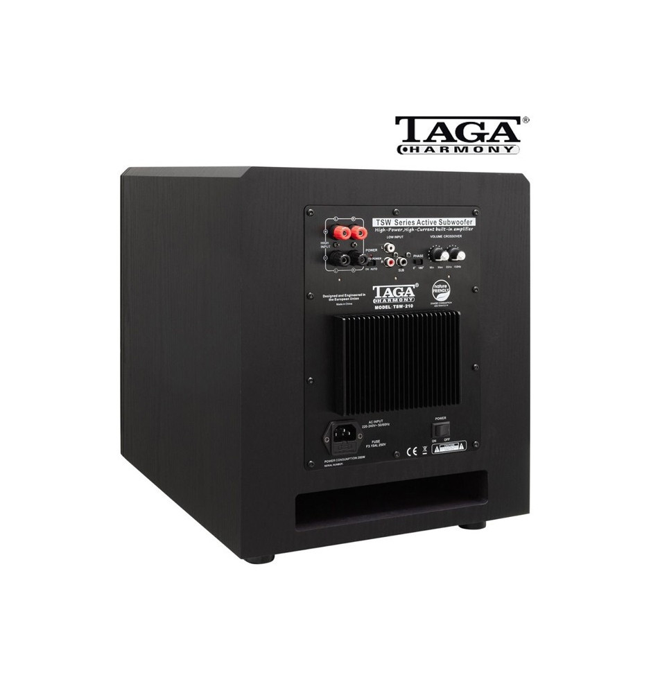 Subwoofer TAGA HARMONY TSW-212 wykorzystuje całkowicie nowe komponenty, dzięki czemu jest w stanie zapewnić jeszcze mocniejszy i głębszy bas przy ultra-niskich zniekształceniach na dowolnym poziomie głośności.
