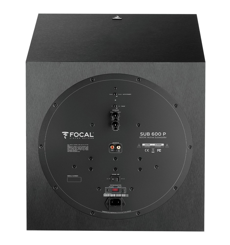 Focal Sub 600P został wyposażony w wydajny wzmacniacz klasy D o wysokiej mocy, który zapewnia głębokie, szybkie i precyzyjne niskie tony. Duży głośnik niskotonowy o średnicy 30 cm pozwala uzyskać imponującą dynamikę, dzięki czemu subwoofer świetnie sprawdza się zarówno w filmach, jak i muzyce. Brzmienie pozostaje czyste i kontrolowane nawet przy wysokich poziomach głośności. Sztywna, zamknięta konstrukcja z wysokiej jakości materiałów zapewnia stabilność pracy przetwornika i czystość brzmienia.