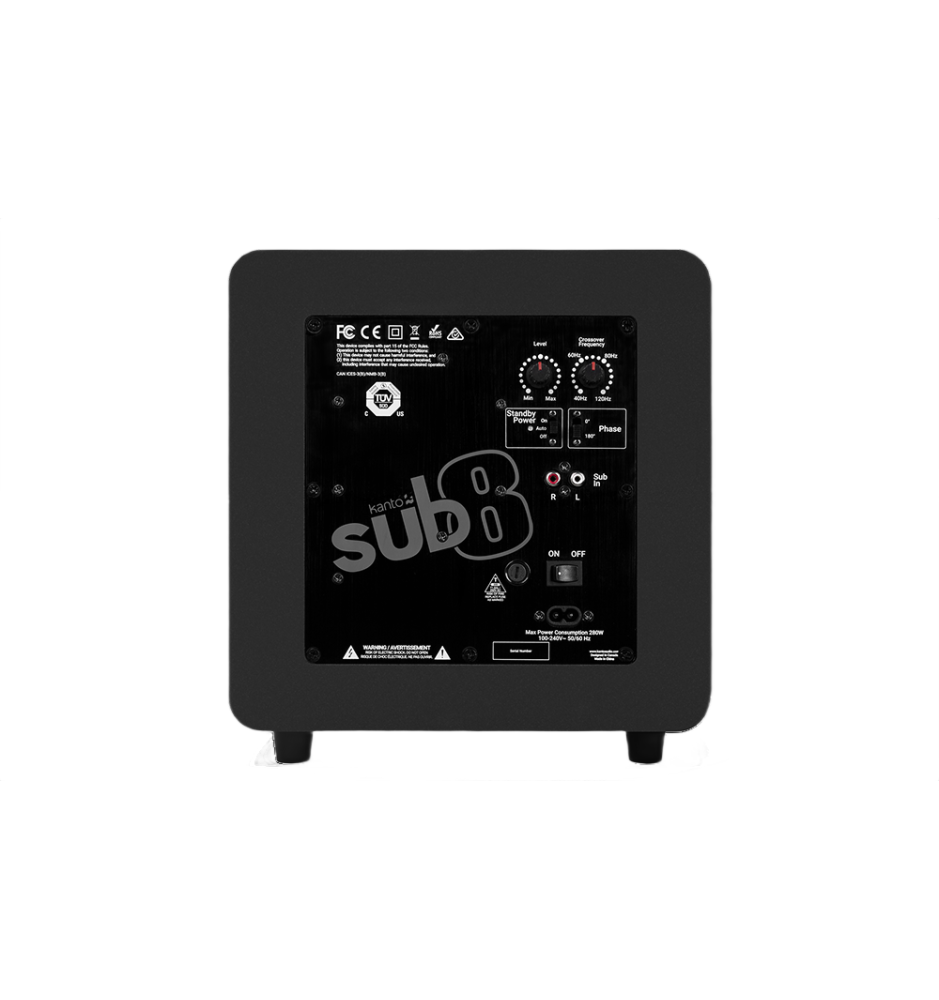 Subwoofer Kanto SUB8 wyposażono w wejścia RCA L/R oraz regulację fazy i filtra dolnoprzepustowego, co umożliwia idealne dopasowanie do każdego zestawu audio. Niezależnie od tego, czy korzystasz z głośników Kanto, czy innej marki, SUB8 bez problemu wkomponuje się w Twoje środowisko odsłuchowe.