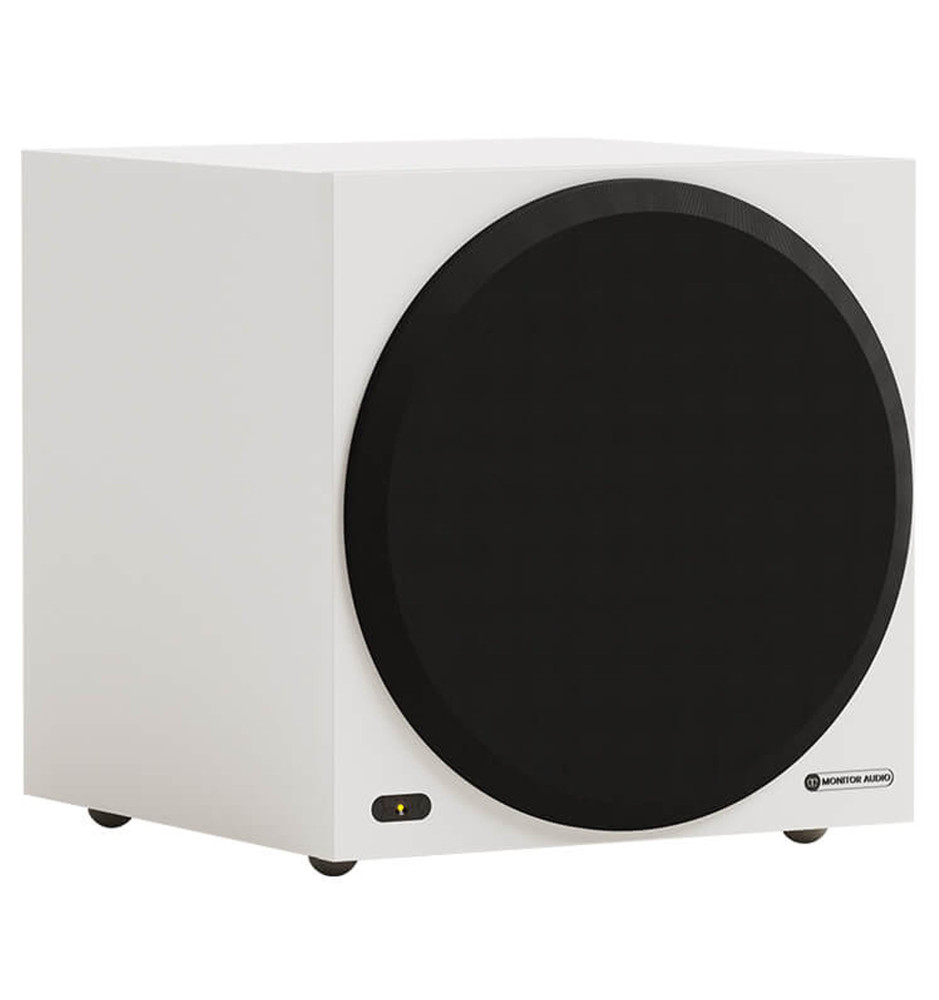 Kompaktowy aktywny subwoofer z nowej serii Monitor Audio Vestra o mocy 250 W RMS, wyposażony w 10-calowy przetwornik C-CAM i zaawansowane tryby DSP.