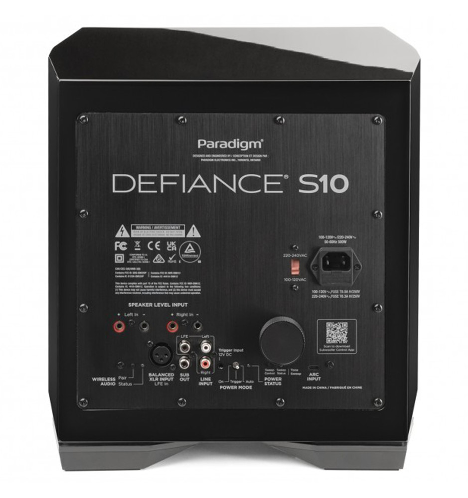 Defiance S10 został wyposażony we wzmacniacz Ultra Class-D o mocy 500 W RMS (1000 W szczytowej) oraz 10-calowy (254 mm) przetwornik niskotonowy S-PAL™ z anodowanego aluminium, co przekłada się na dynamiczny, czysty bas bez nadmiernych wibracji. Subwoofer charakteryzuje się pasmem dolnego zakresu sięgającym 18 Hz, dzięki czemu nawet najniższe częstotliwości są odtwarzane z wyraźną kontrolą i głębią.