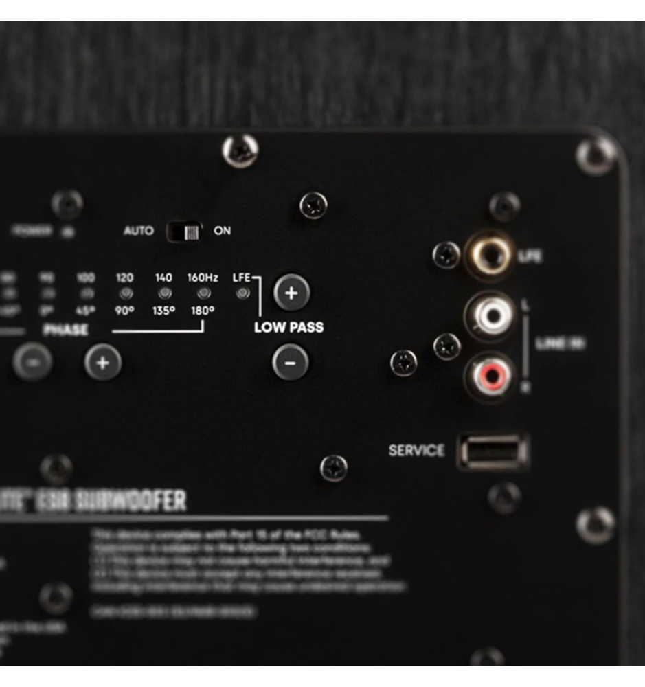 Dzięki złączom LFE i Line In, inteligentnej regulacji fazy, głośności oraz filtra dolnoprzepustowego 4-rzędu, subwoofer ES12 może być z łatwością połączony z dowolnym systemem audio, zapewniając głębokie i wciągające basy. Smukły kształt obudowy w połączeniu z dwoma przednimi portami Power Port® pozwala na umieszczenie subwoofera w dowolnym miejscu, nawet przy ścianach i na półkach.